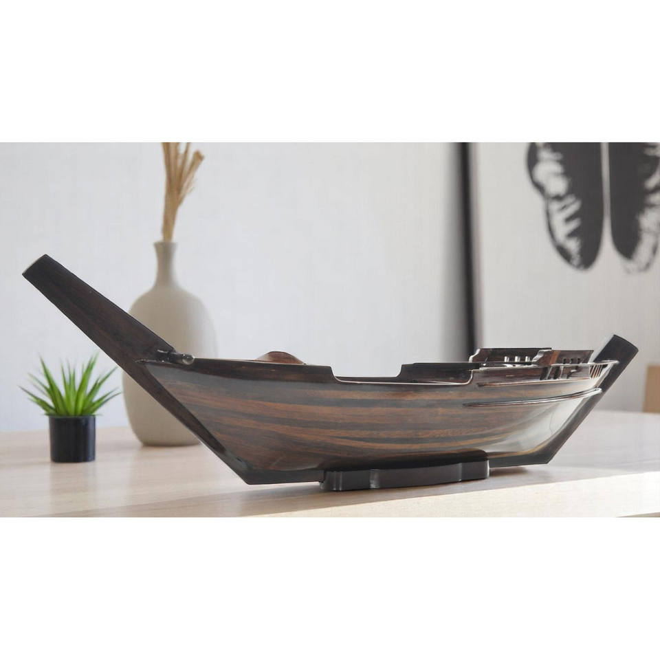 HMS 6\" Dark Brown Acacia Wood Serving Tray with Handles Large Size for Breakfast Decorative and Novelty Design