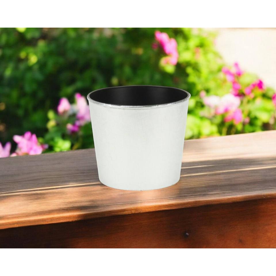 HMS 6\" Eco-Friendly Silver Recycled Plastic Indoor/Outdoor Pot Planter Contemporary Powder Coated for Dining Living Floors