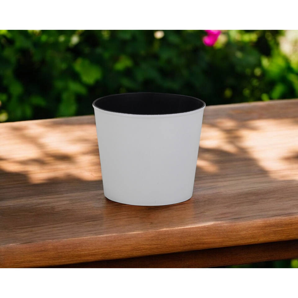 HMS 6\" White Recycled Plastic Pot Planter Eco-Friendly Indoor Outdoor Wall Planter Glazed Embossed Design for Gardening Home