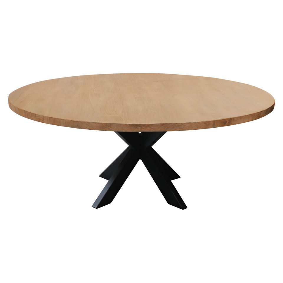 HMS 60\" Dining Table with Natural & Black Rounded Solid Wood and Iron Pedestal Base Natural and Black