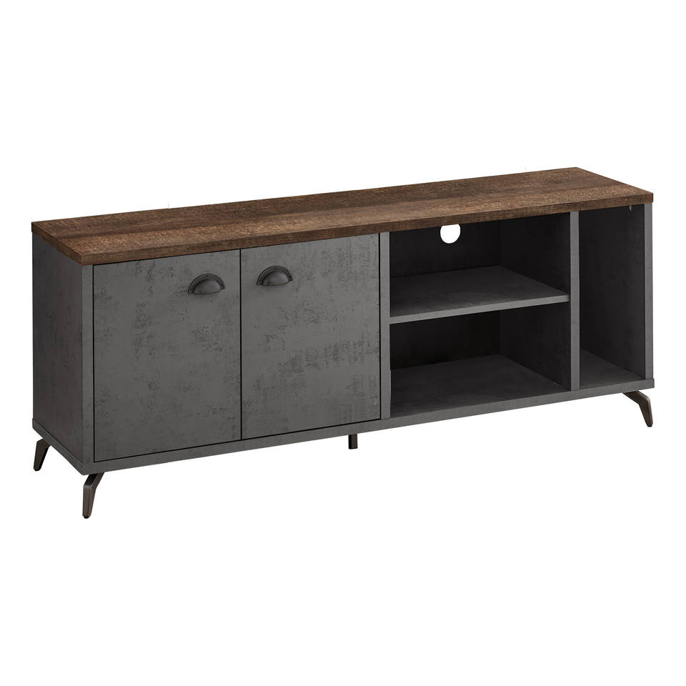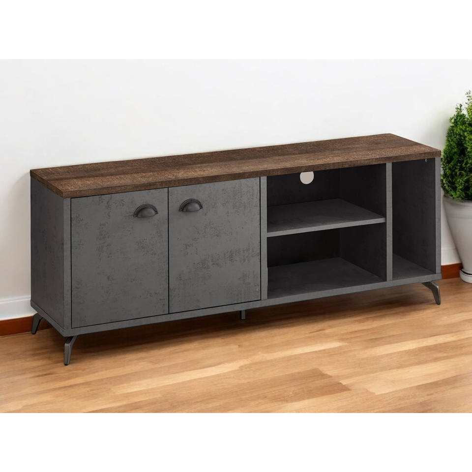 HMS 60\" Distressed Reclaimed Wood TV Stand Brown and Gray with Enclosed and Open Storage Unique Vintage Style