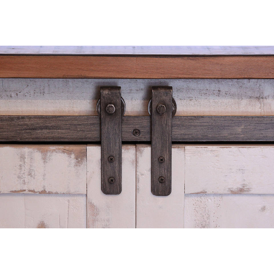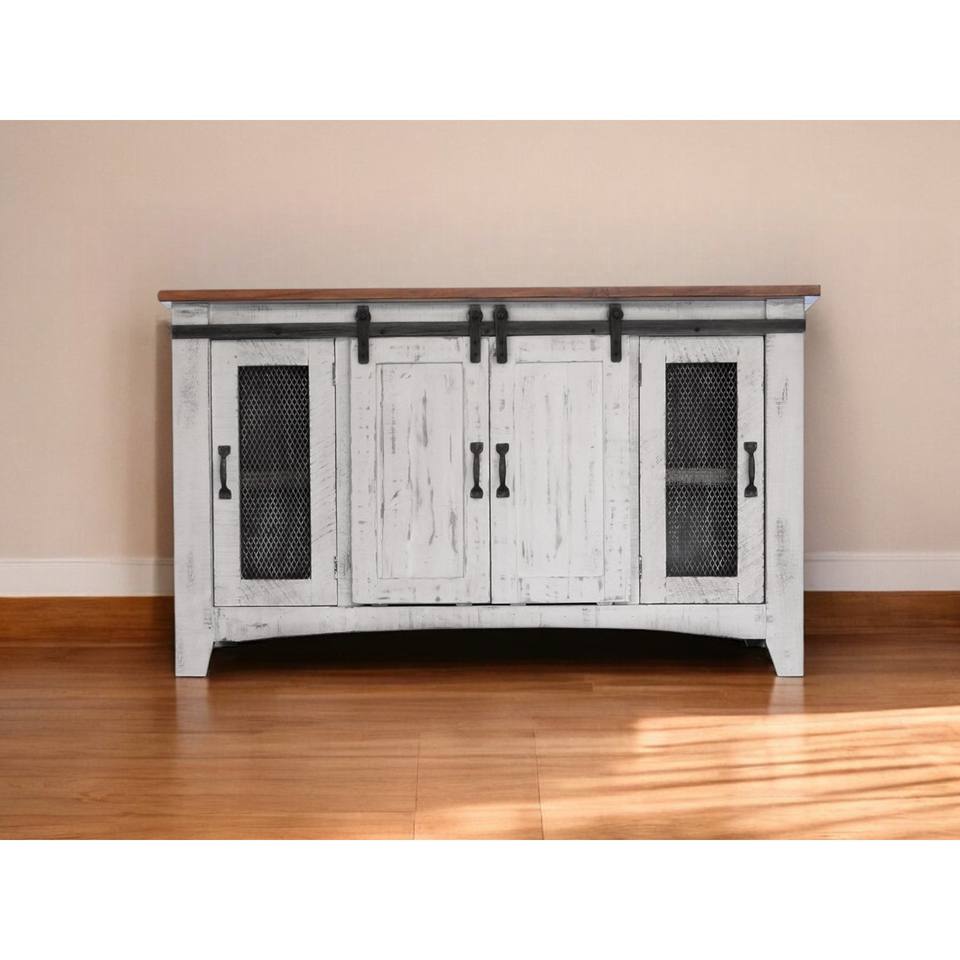 HMS 60\" White Distressed TV Stand Solid Wood Cabinet Enclosed Storage