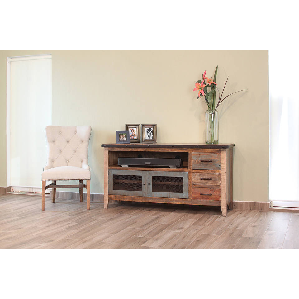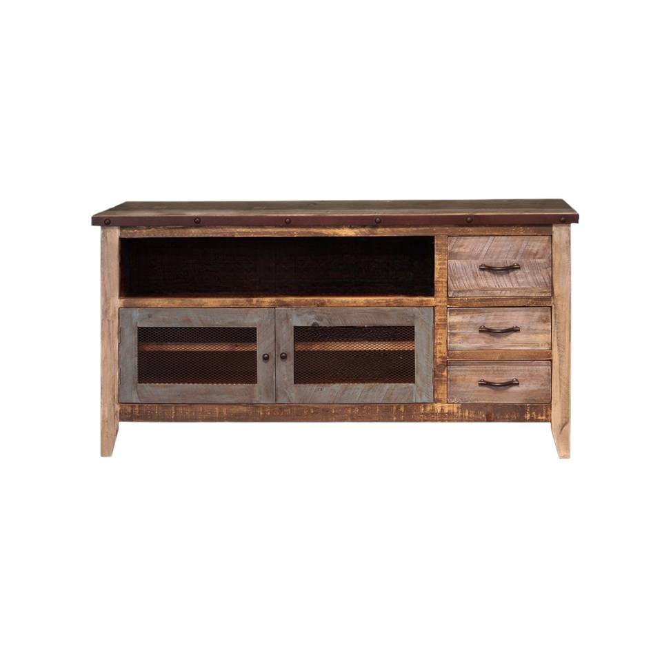 HMS 61 Brown Solid Wood Distressed TV Stand Enclosed Storage Cabinet