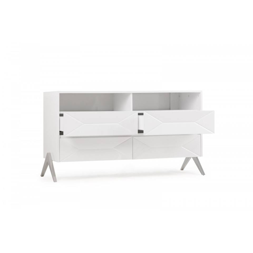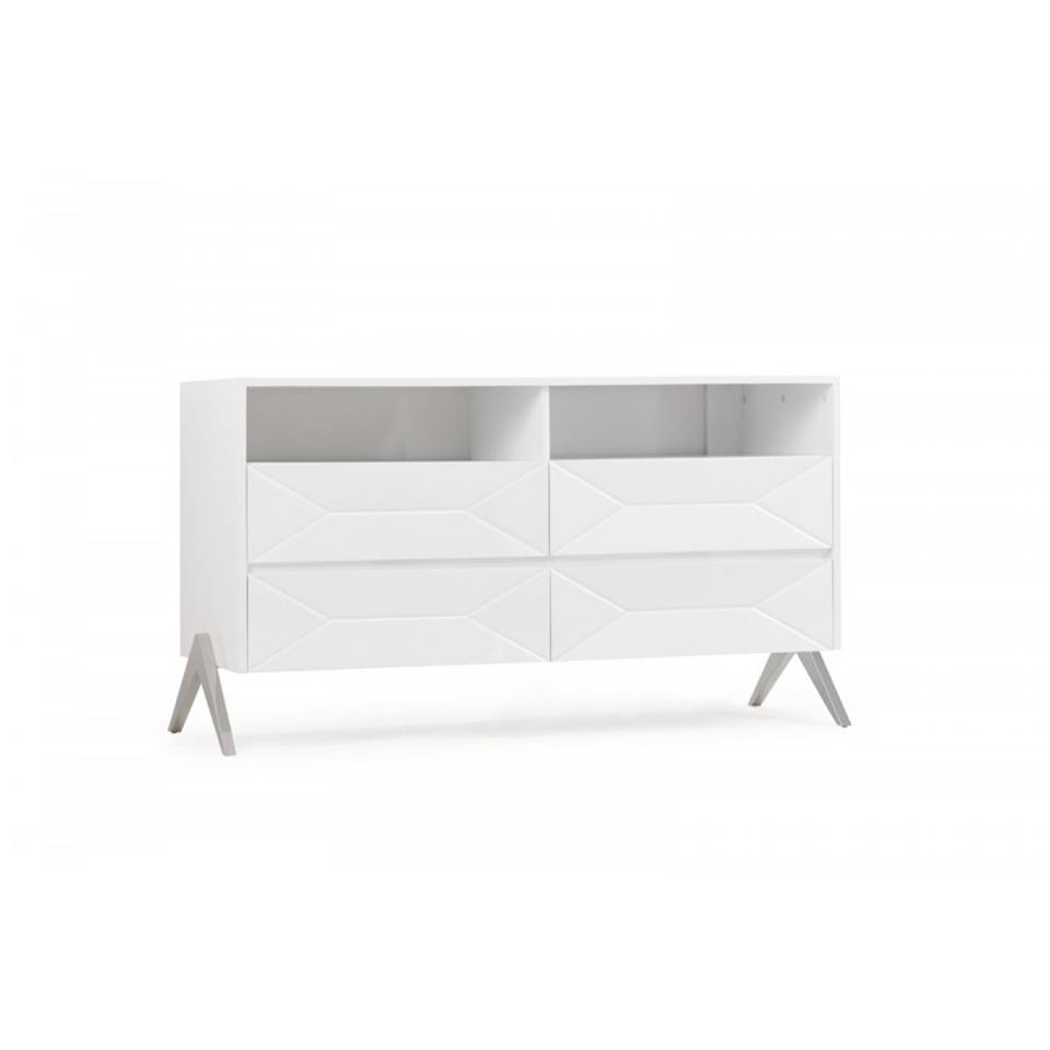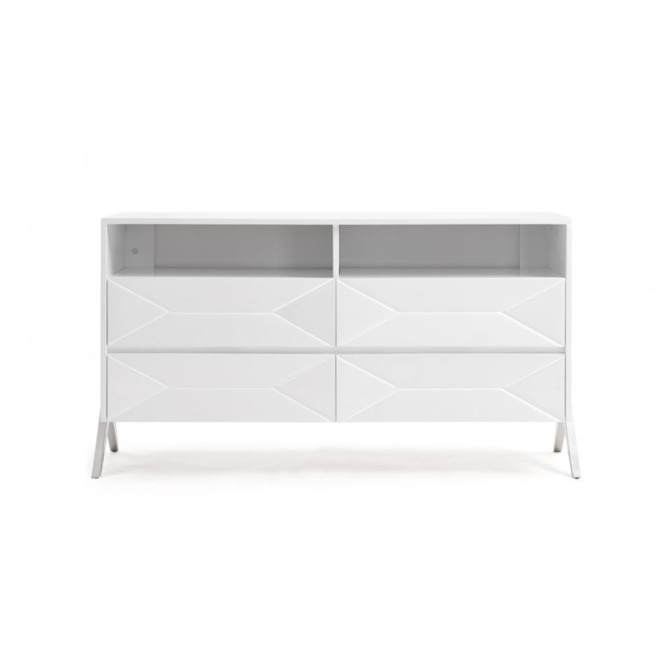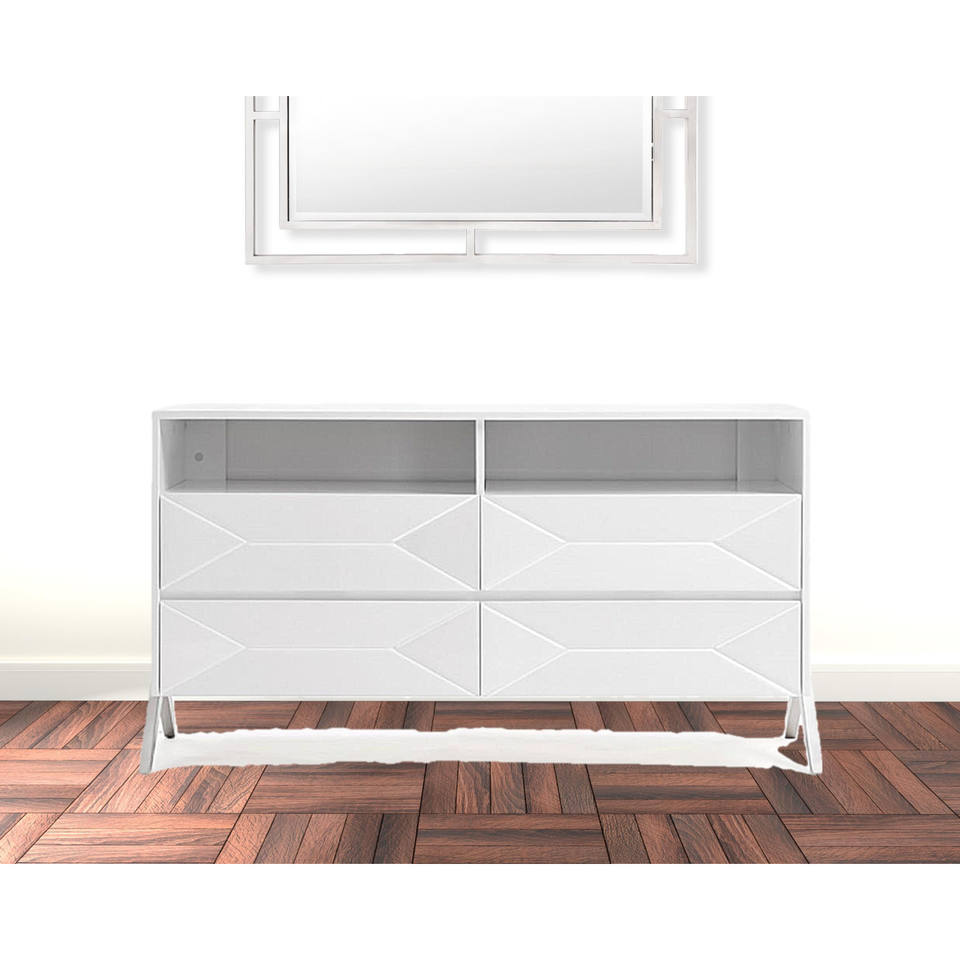 HMS 61 White Luxury Four Drawer Double Dresser Extendable Luxury Drawer Cabinet for Home Bar or Living Room Manufactured Wood