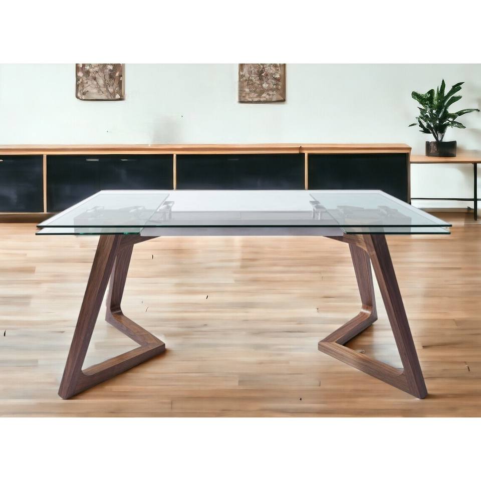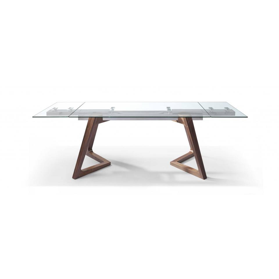 HMS 63 Self-Storing Leaf Dining Table with Clear and Brown Glass and Solid Wood Elegant Dining Solution