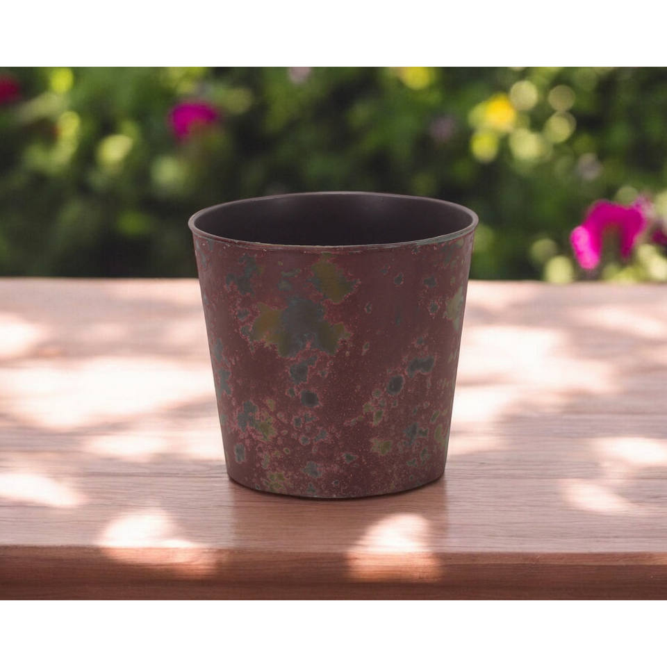 HMS 7\" Red Glazed Recycled Plastic Indoor/Outdoor Round Pot Planter for Home Gardening Bonsai Durable Flower Pot for Floor Use