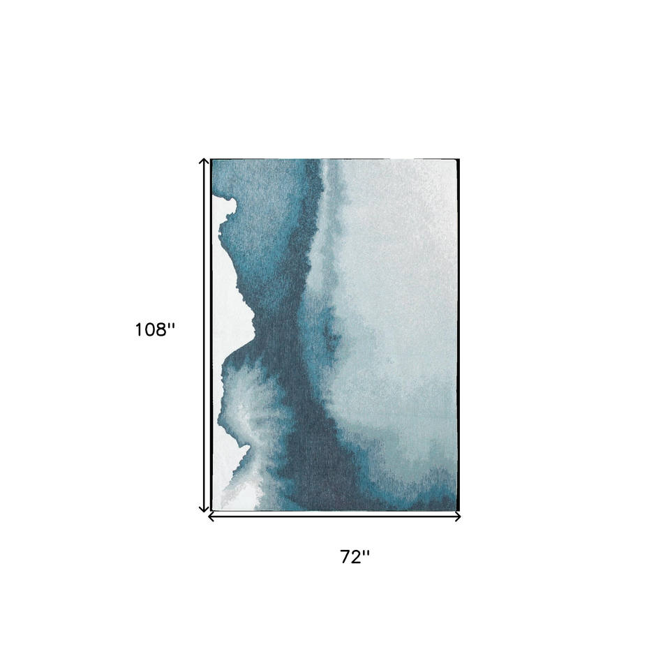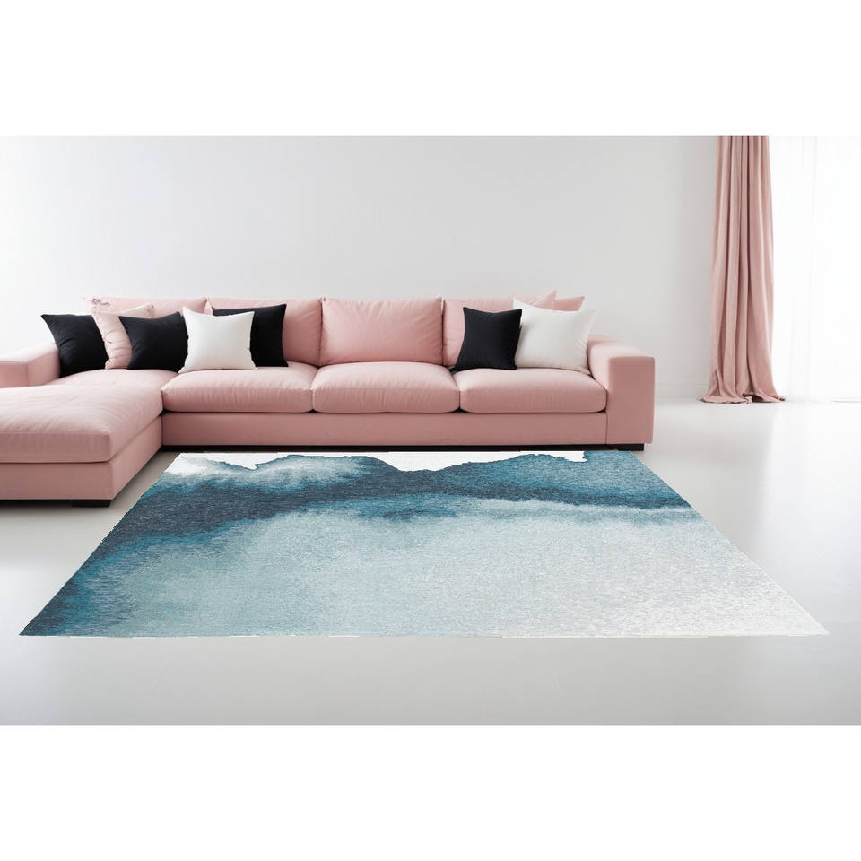 HMS 7' X 9' Abstract Non-Skid Area Rug Blue and Gray Color Scheme Elegant Modern Design for Home Decor