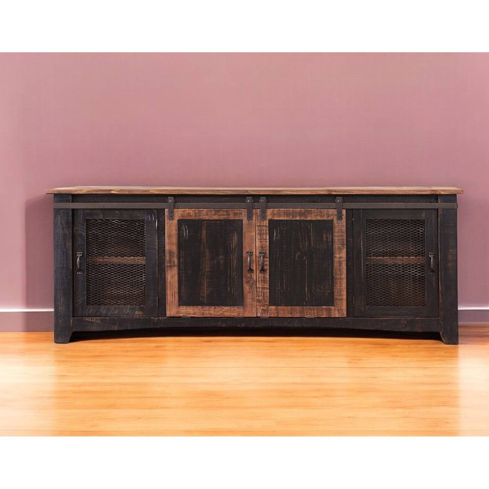 HMS 79 Black Distressed TV Stand Solid Wood Cabinet Enclosed Storage