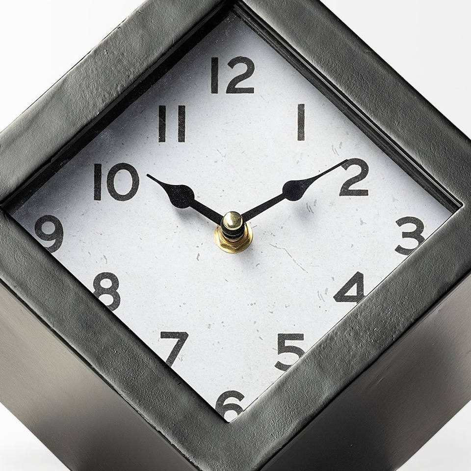 HMS 8\" Black Ceramic Desktop Clock Classic Style Square Design with Backlight Battery Powered for Home or Office Desk