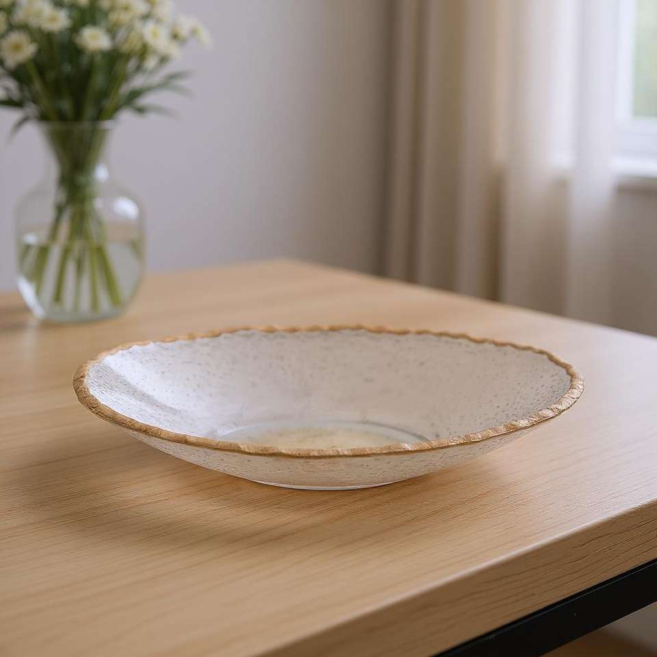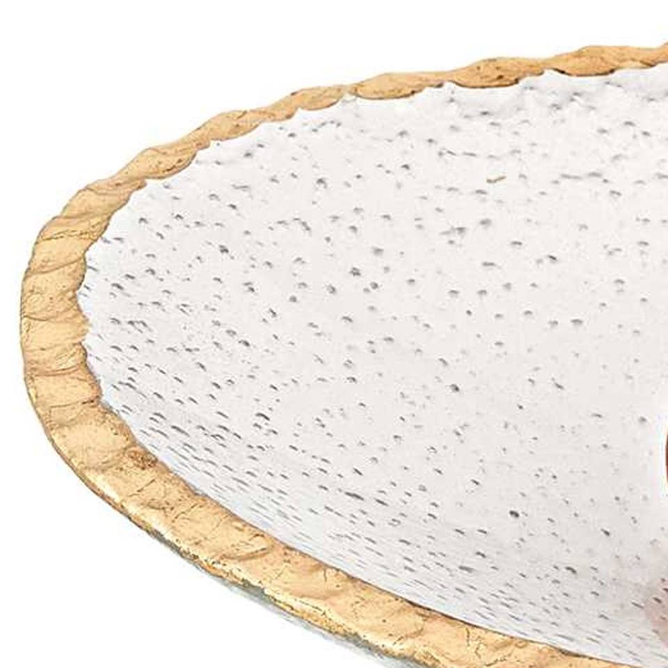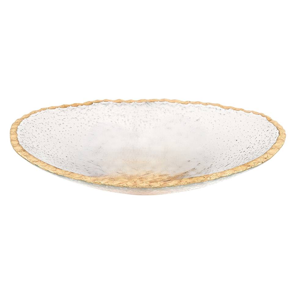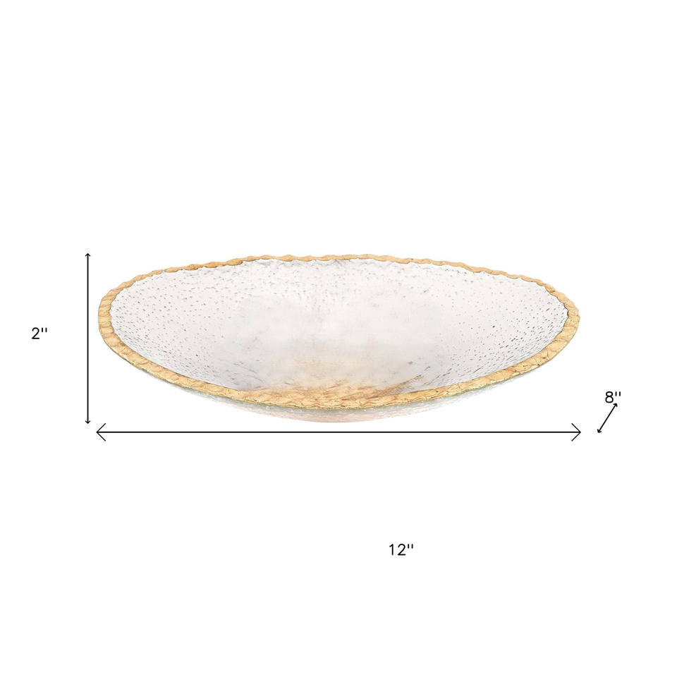HMS 8\" Clear and Gold Glass Scalloped Edge Oval Serving Bowl