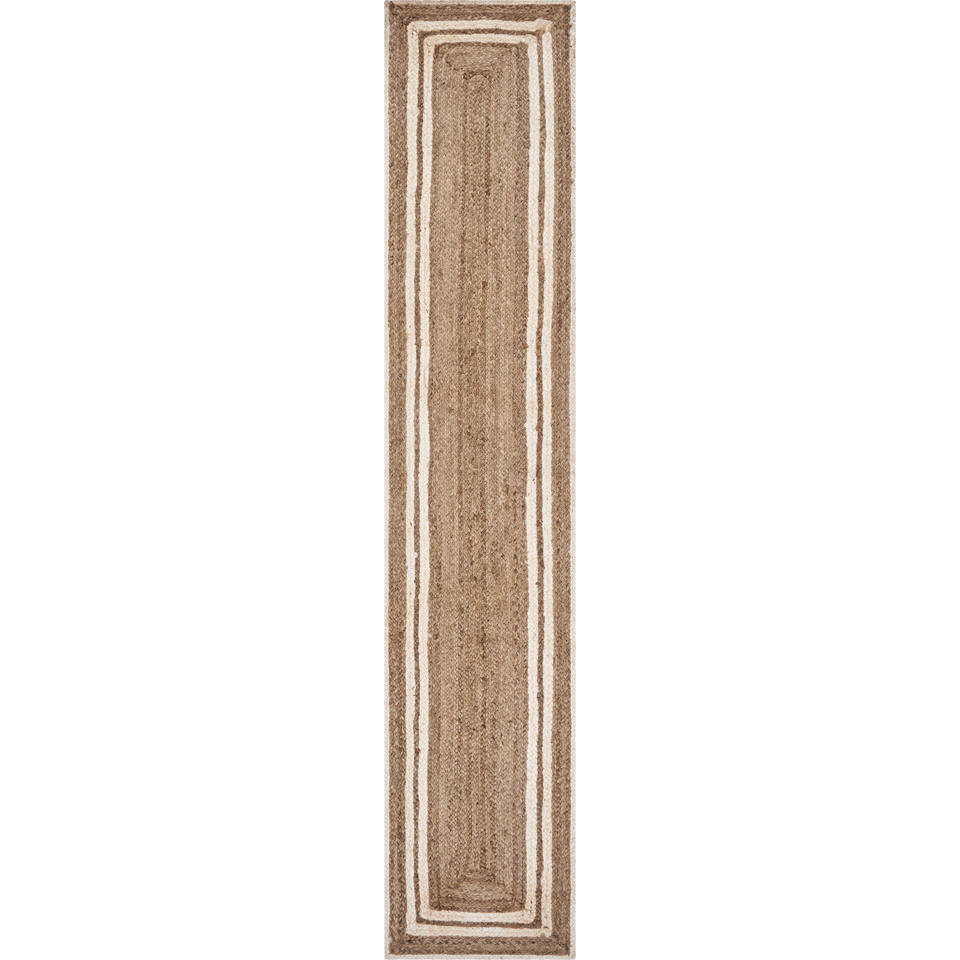 HMS 80 Natural and Cream Geometric Bordered Jute Table Runner Stylish and Elegant Home Decor