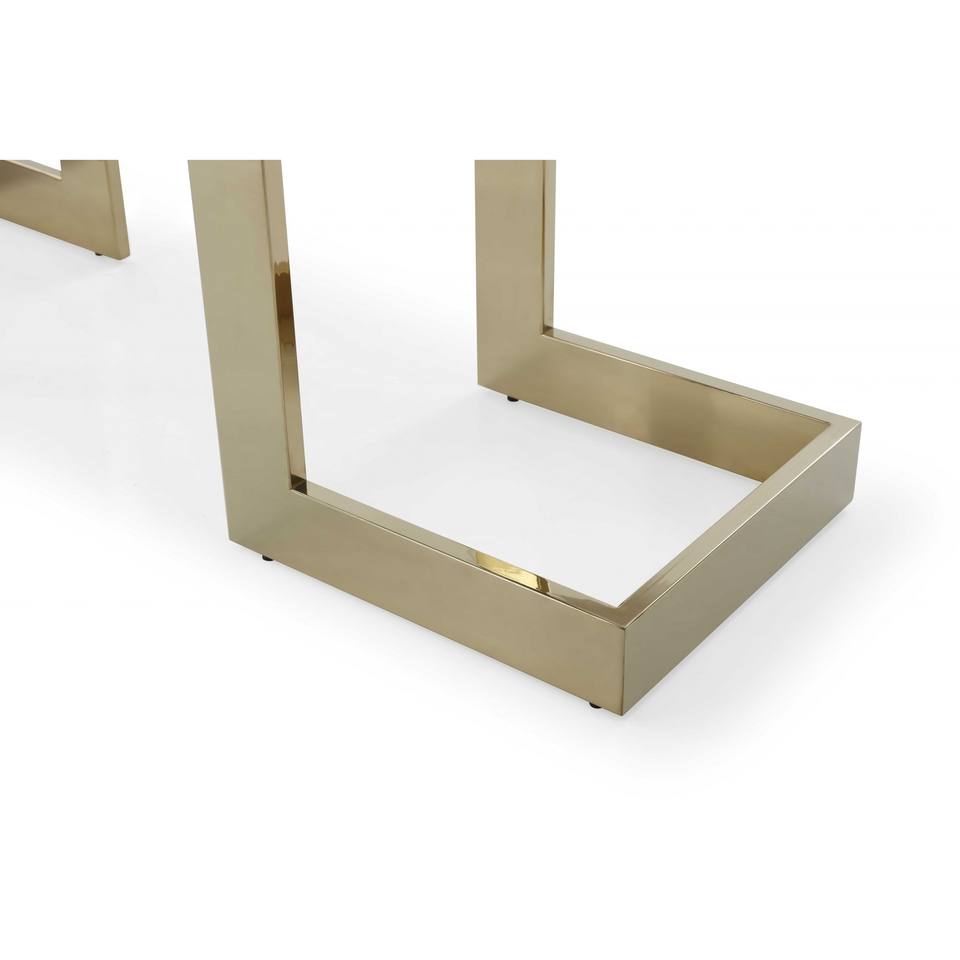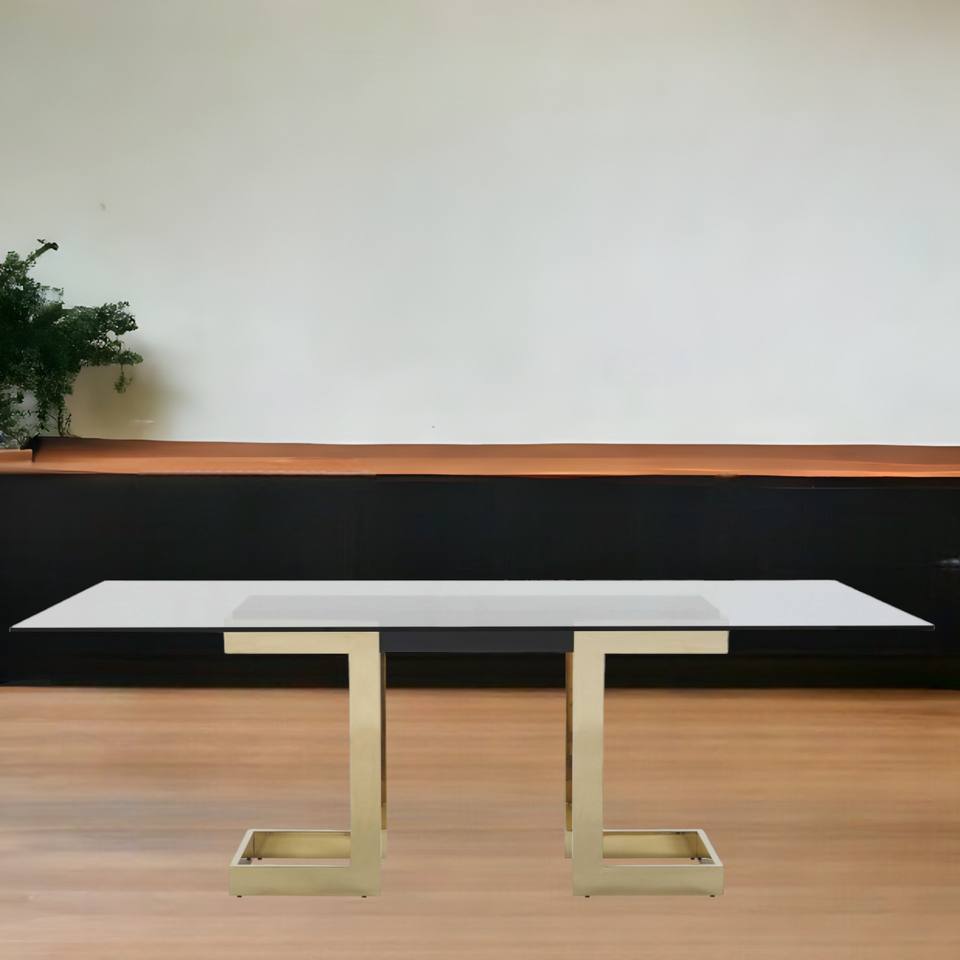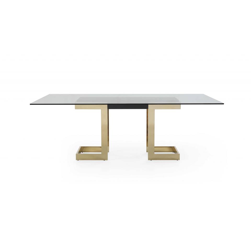 HMS 87 Clear and Gold Double Pedestal Base Dining Table with Glass and Stainless Steel Elegant Dining Tables