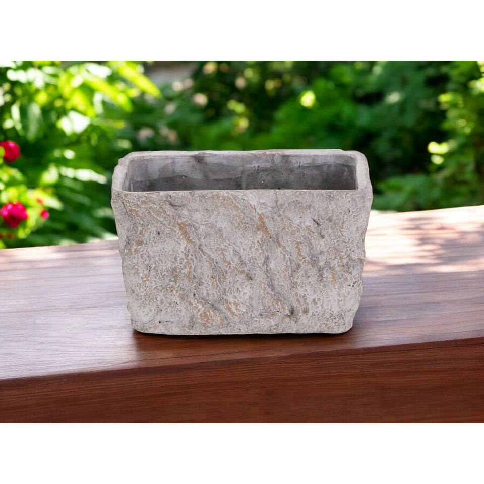 HMS 9\" Gray Speckle Glaze Cement Rectangular Planter Indoor Outdoor Flower Pot for Plants