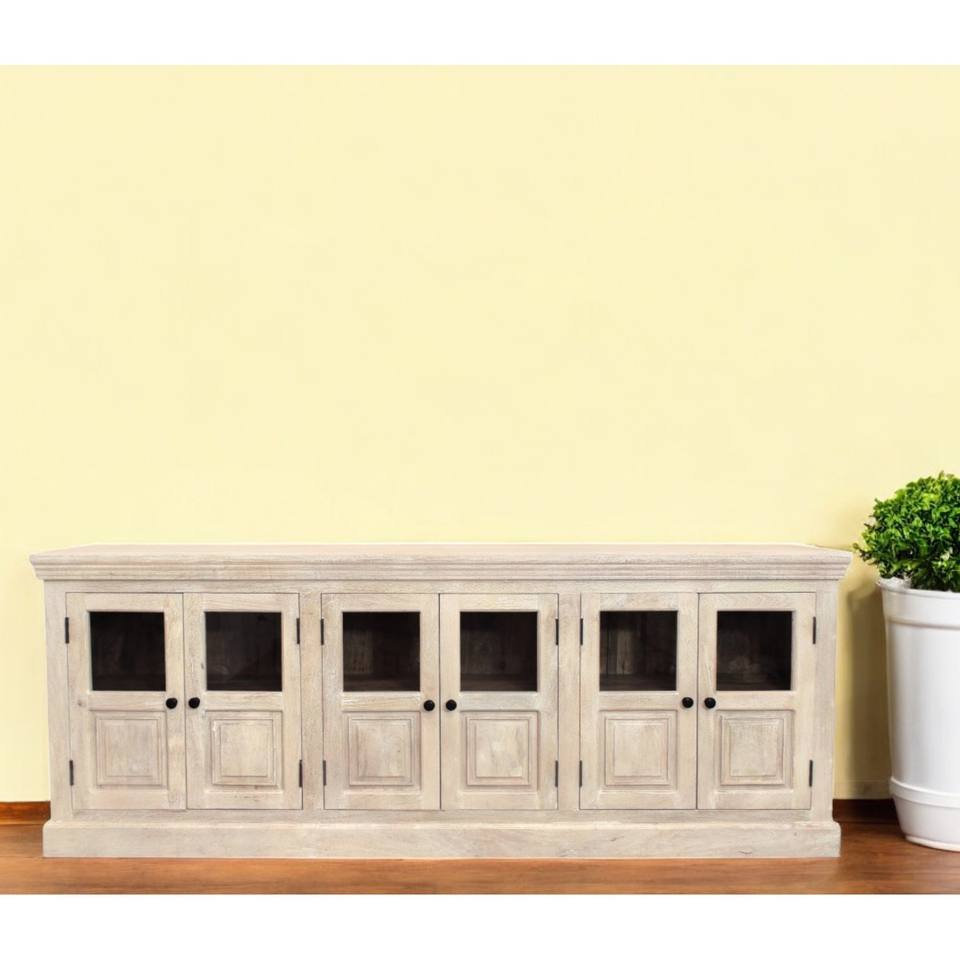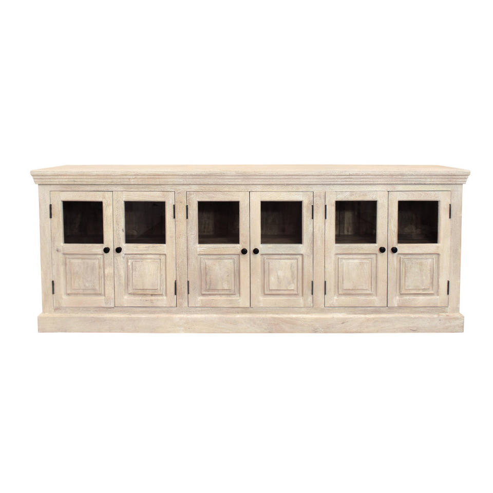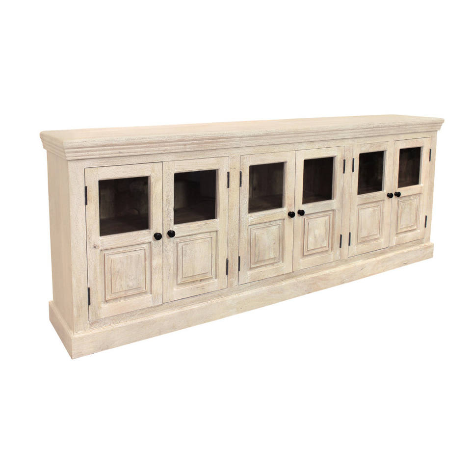 HMS 93 Midcentury Modern Sideboard White Distressed Mango Wood with Six Glass Doors for Home Bar Furniture