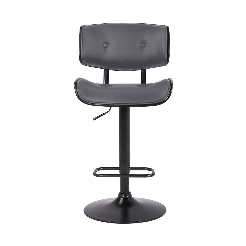 HMS Adjustable Height Swivel Bar Chair in Gray and Black Iron with Faux Leather Comfortable and Stylish Pub Seating