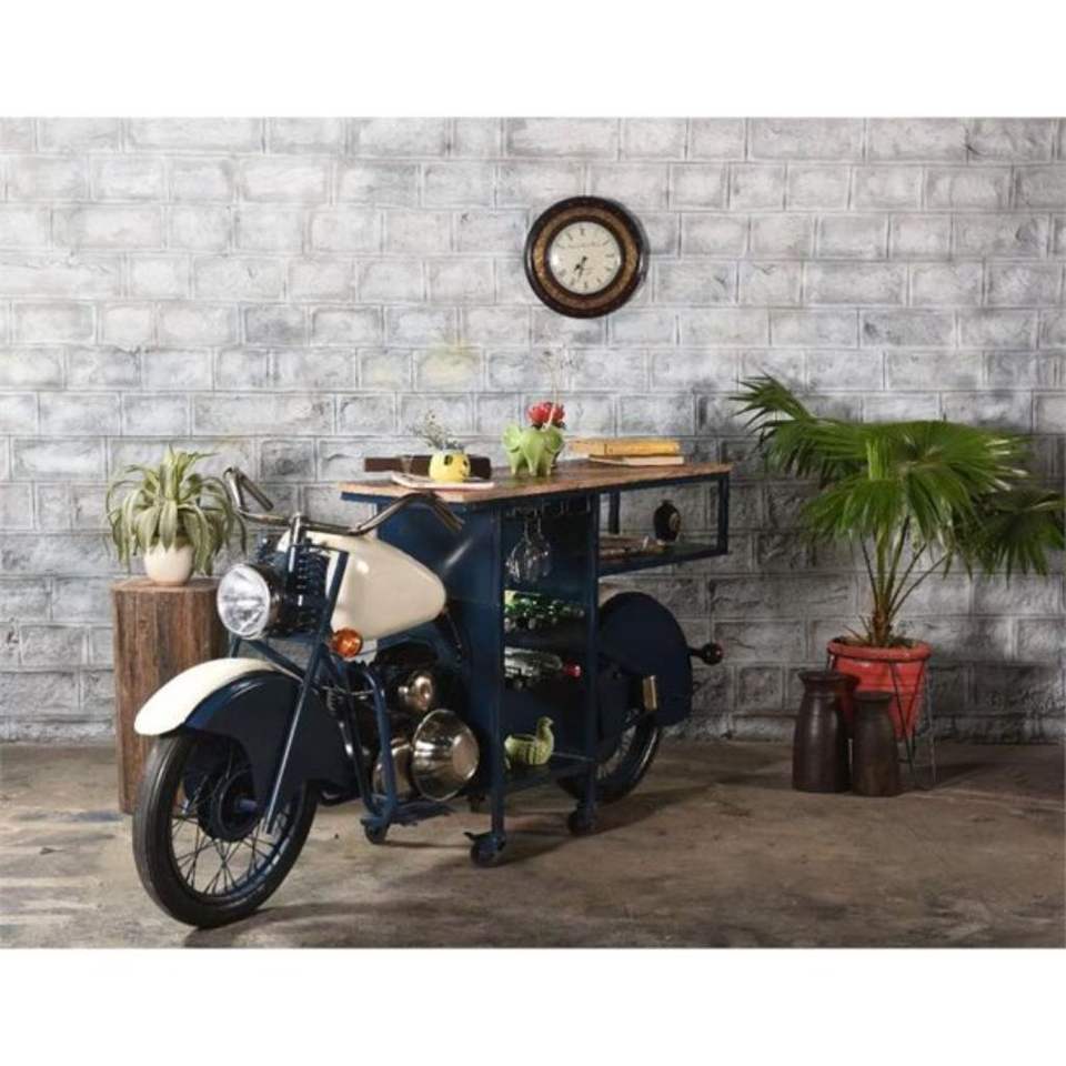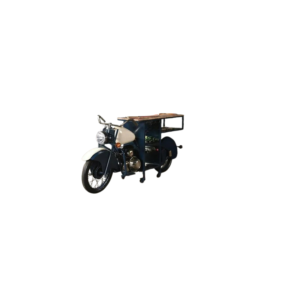 HMS Blue and White Metal and Solid Wood Rolling Bar Cart with Wine Storage Elegant Home Bar Set