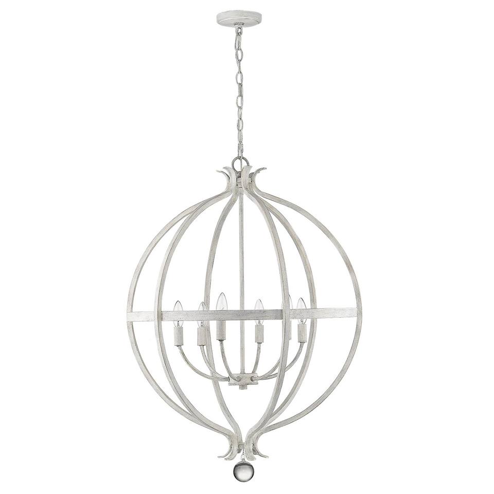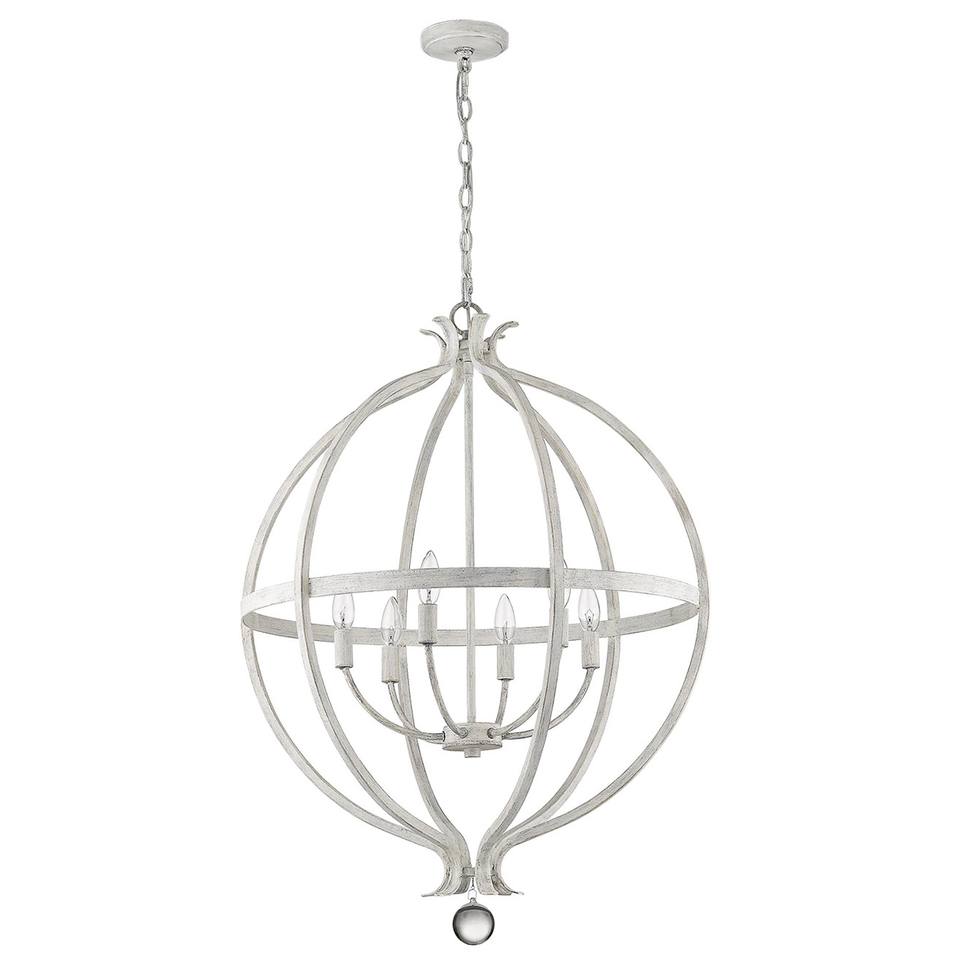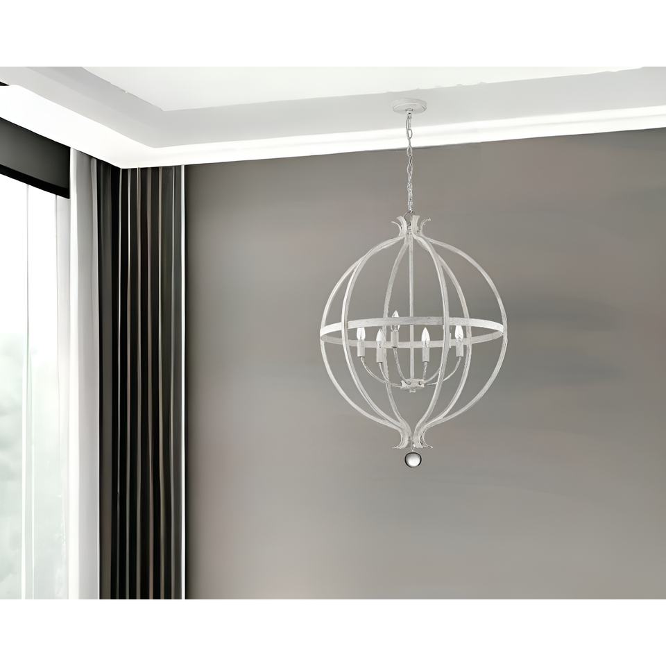 HMS Callie 6-Light Antique European Country White Pendant 220V Acrylic Aluminum Chrome Chandelier with Remote Control