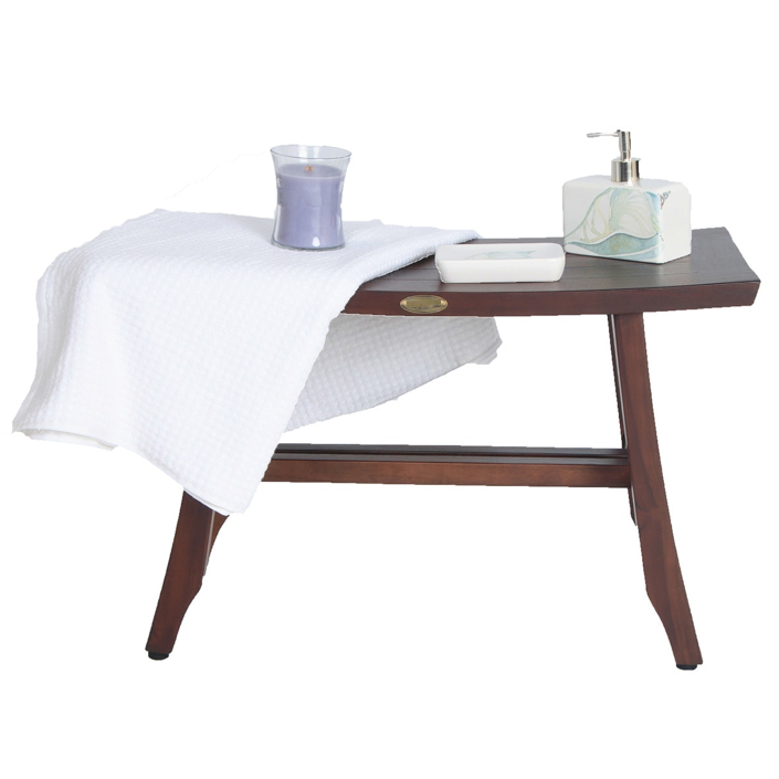 HMS Contemporary Teak Shower Stool or Bench Brown Finish Modern Design for Bathroom Bedroom Living Room Kitchen School Use