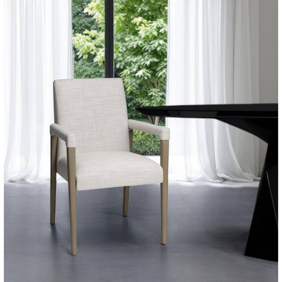 HMS Cream and Brown Upholstered Fabric Dining Arm Chair King Louis Back Design