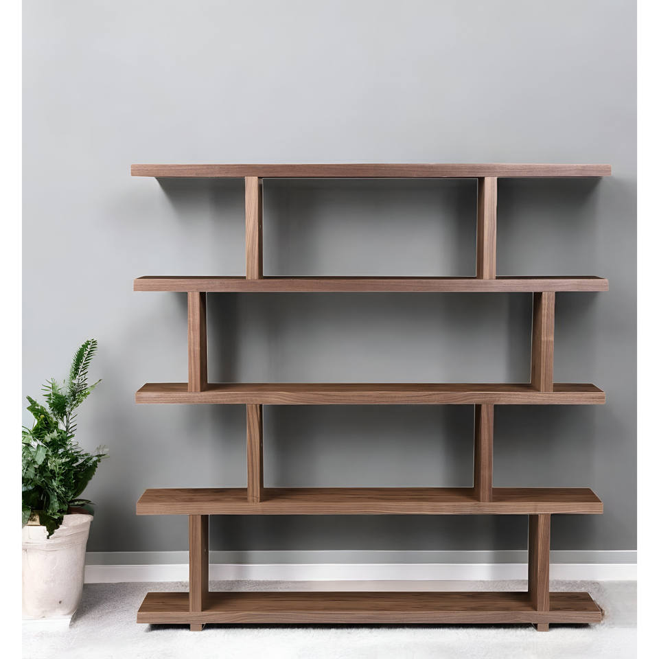 HMS Five Tier Bookcase in Brown and Natural Wood Elegant Bookshelves for Home Office Use