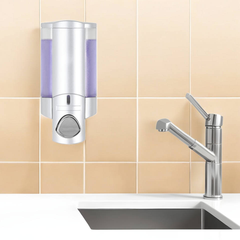 HMS Gray Heavy Duty Manual Pump Soap Dispenser Double ABS Plastic Wall Mount Modern Style for Hotel and School Use