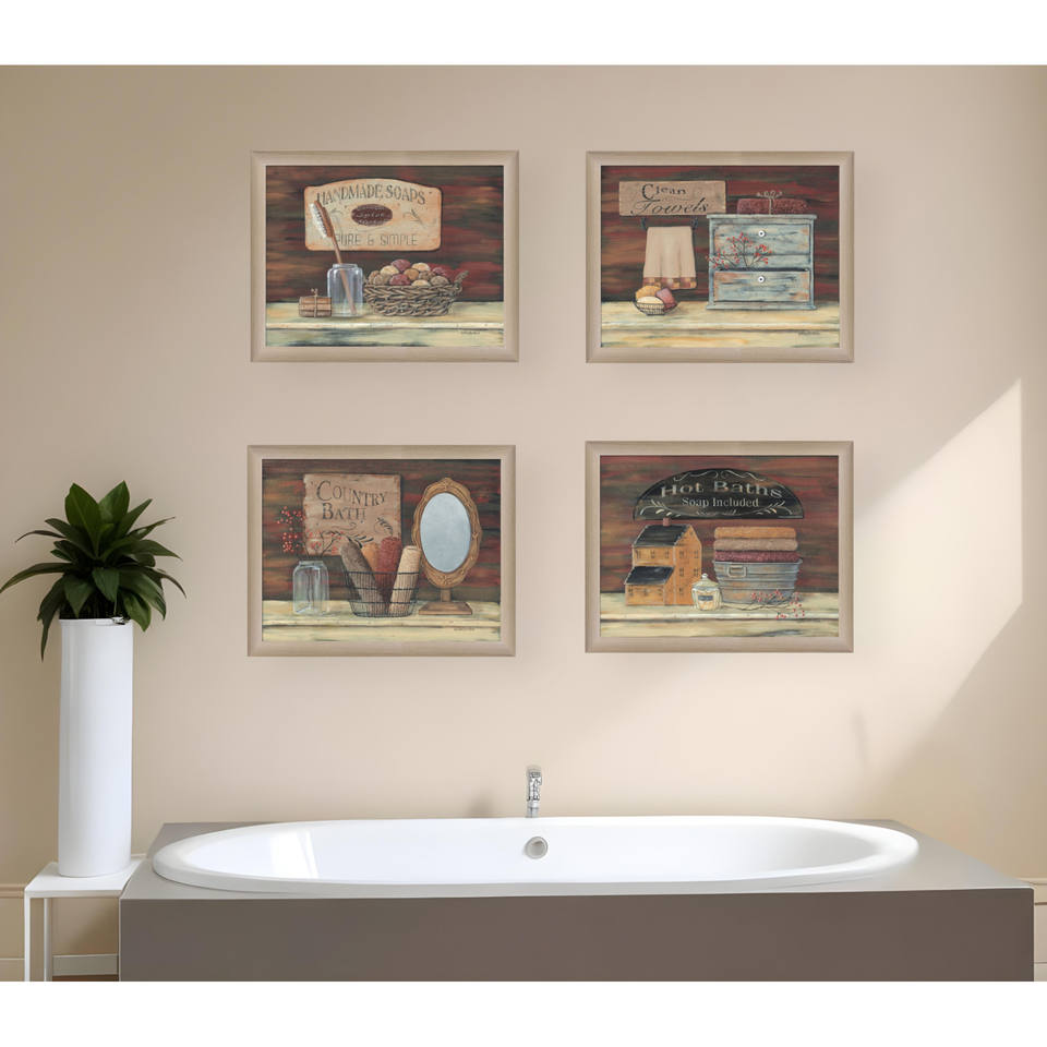 HMS Luxury & Elegant Collection I 1 Brown Framed Print Set of Four Bathroom Wall Art Ceramic Toothbrush Holder for Home Decor
