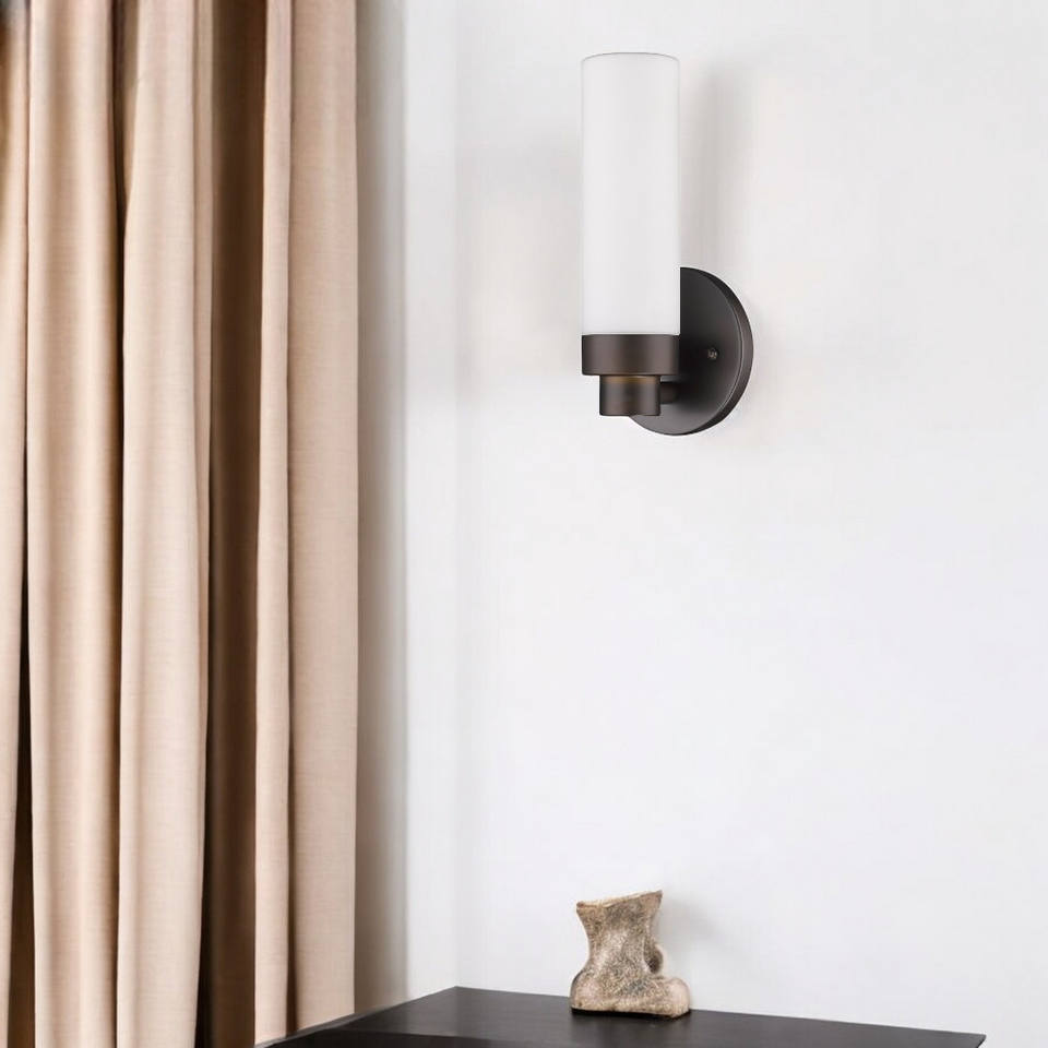 HMS Modern Bronze LED Wall Light Narrow Frosted Glass Shade Warm White CCT for Home Living Room Indoor Use