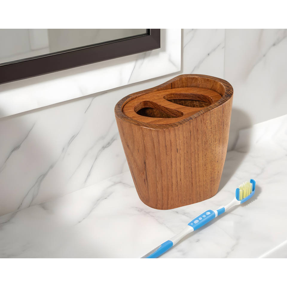 HMS Natural Brown Solid Teak Oval Toothbrush Holder Toilet Brush Holders Product Category