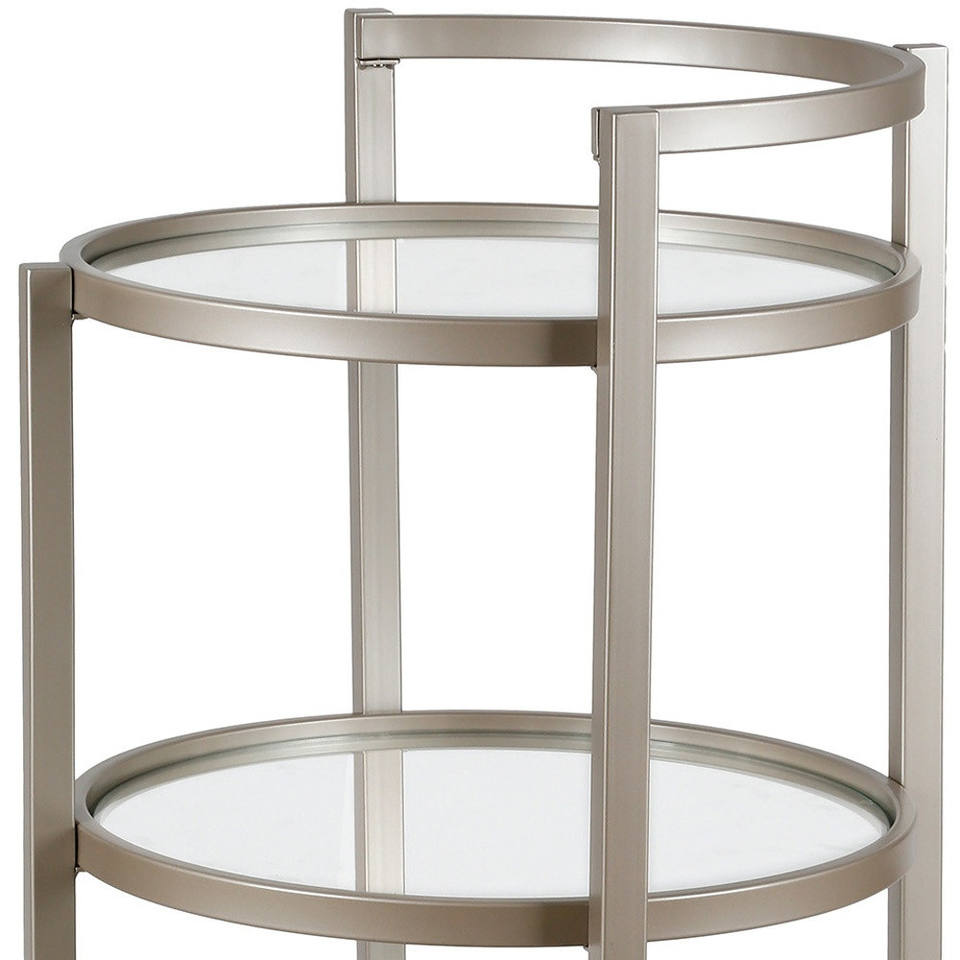 HMS Nickel Steel and Glass Round Rolling Bar Cart Home Furniture