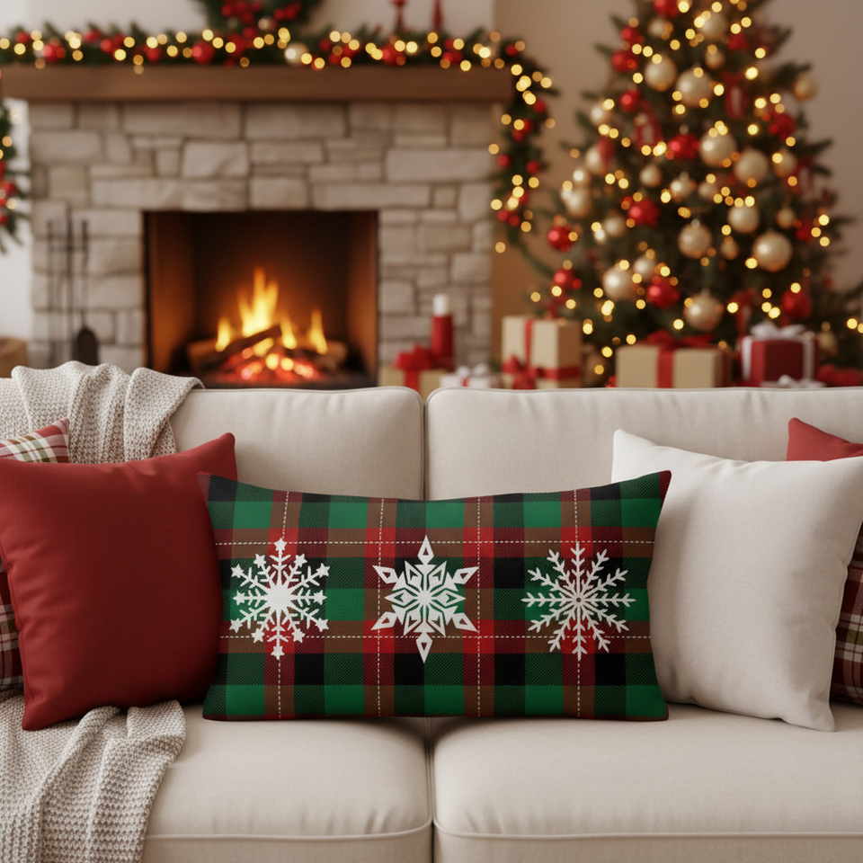 Set HMS di 4 Copricuscini a Motivo a Fiocchi di Neve, Decorazioni Natalizie Festive, Biancheria da Letto per Bambini, Prodotto in Cina, Modello AL1233