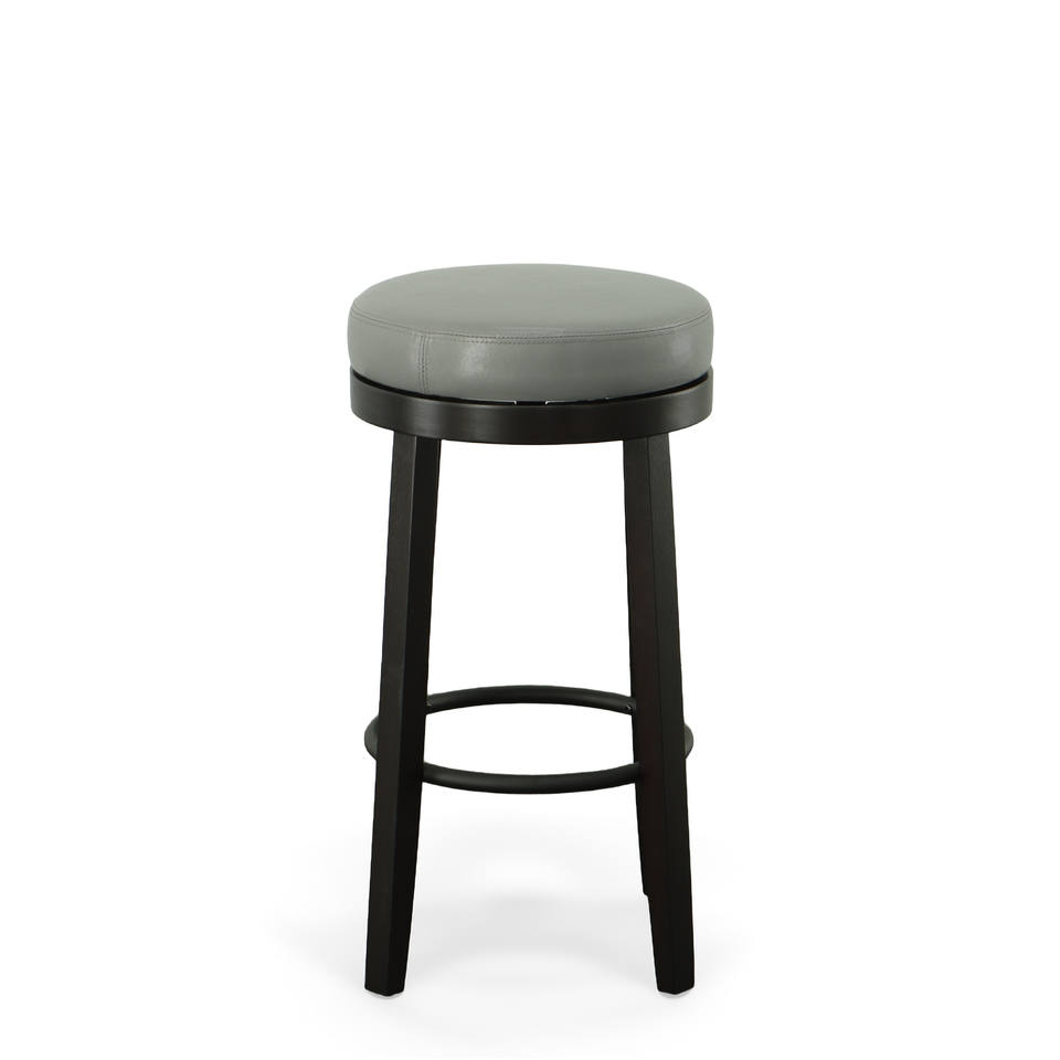 HMS Set of Two 30\" Gray & Espresso Faux Leather Solid Wood Backless Bar Height Swivel Stools Ottomans for Home Bar