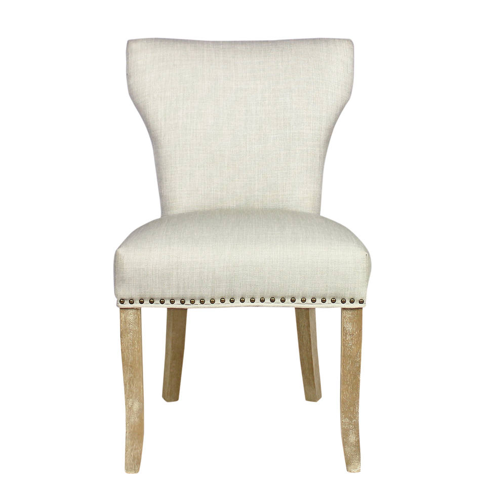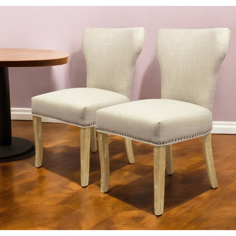 HMS Set of Two Ivory and Natural Upholstered Fabric Parsons Dining Chairs