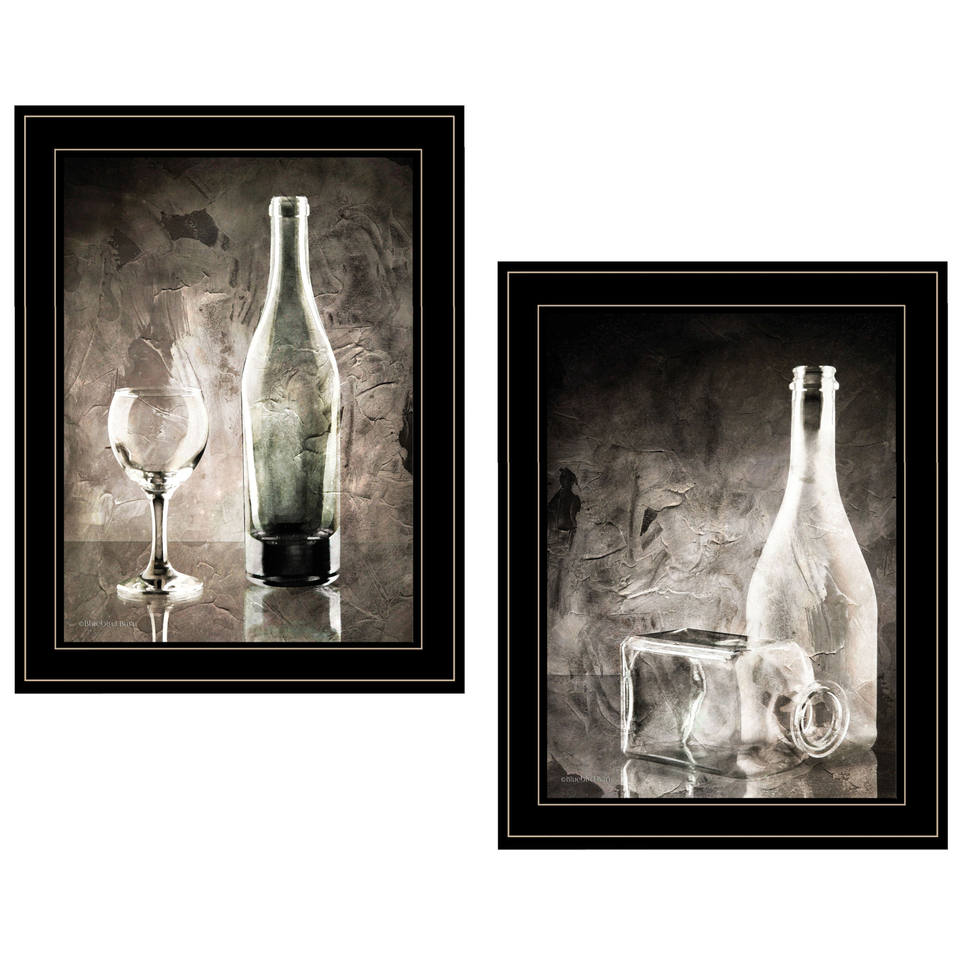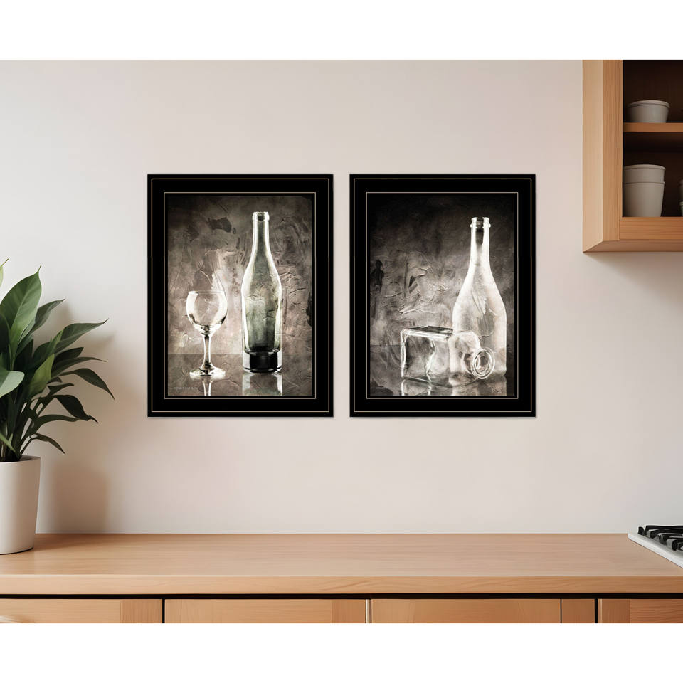 HMS Set of Two Moody Gray Glassware Still Life 3 Black Framed Print Kitchen Wall Art Decal