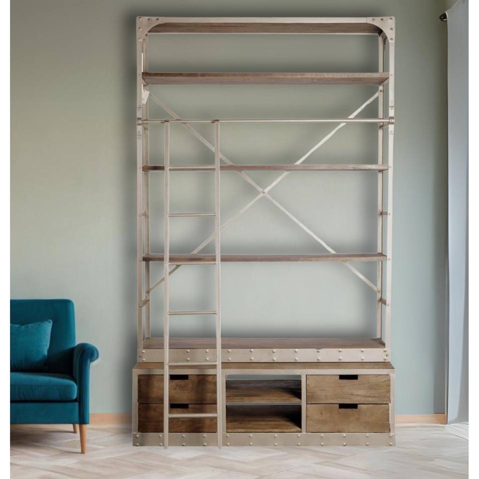HMS Six-Tier Bookcase with Four Drawers Brown Nickel and Solid Wood for Home Office Workshop Living Room School or Hotel