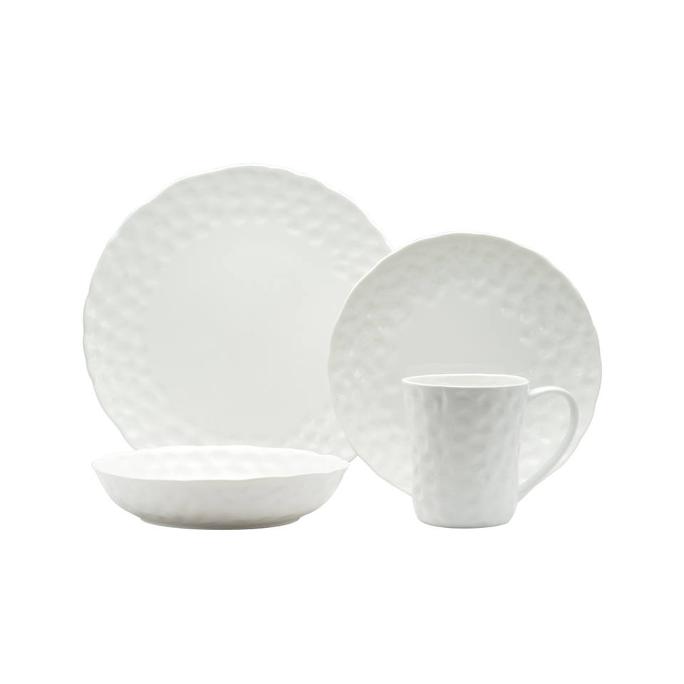 HMS White Six-Piece Round Pebbled Porcelain Service Elegant Six-Bowl Set