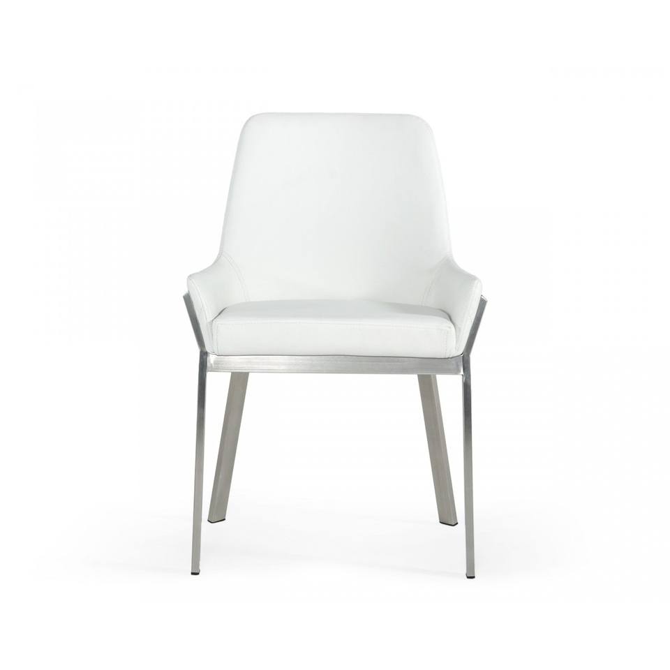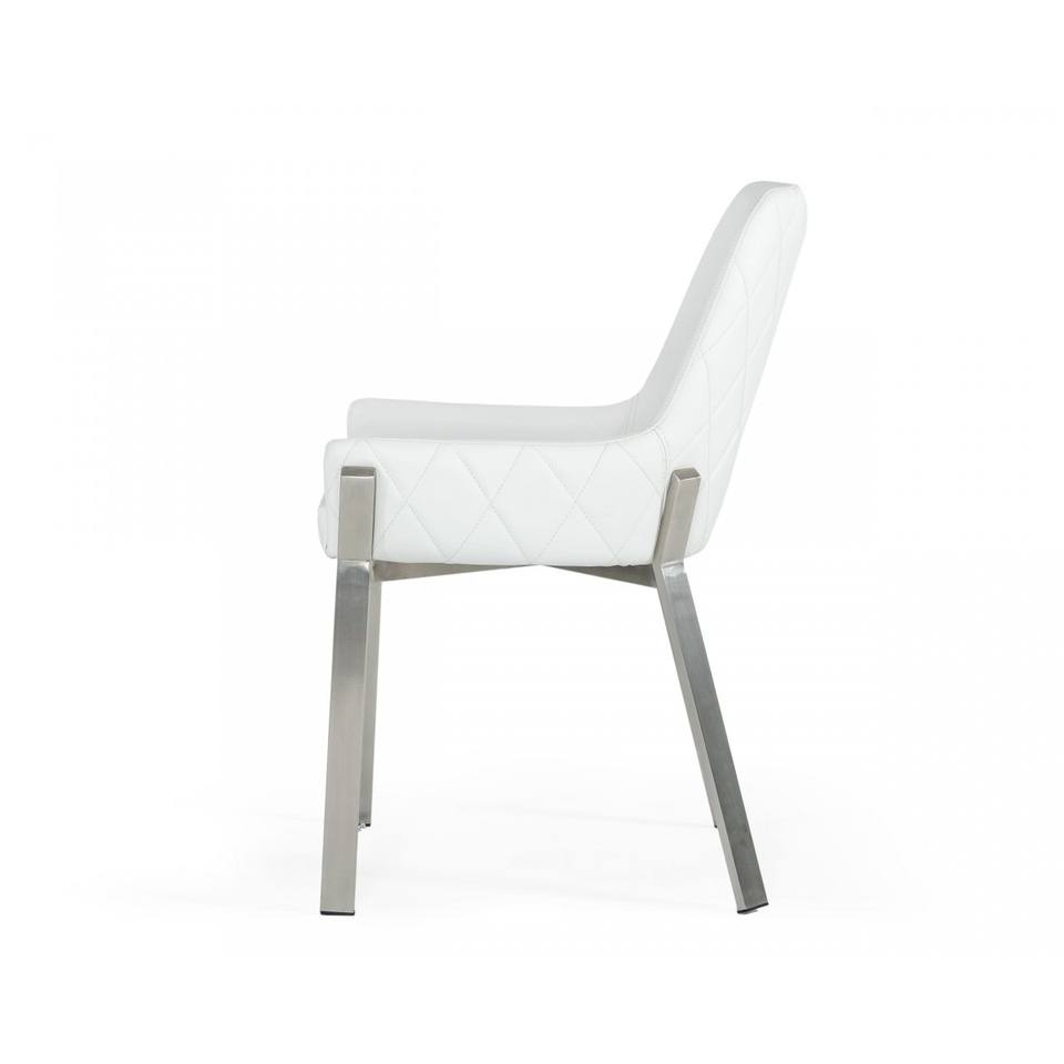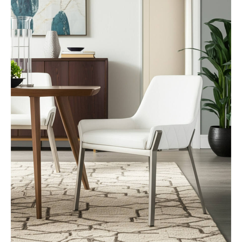 HMS White and Silver Faux Leather Dining Arm Chair PU Leather Upholstered Home Furniture for Living Room and Home Bar Use