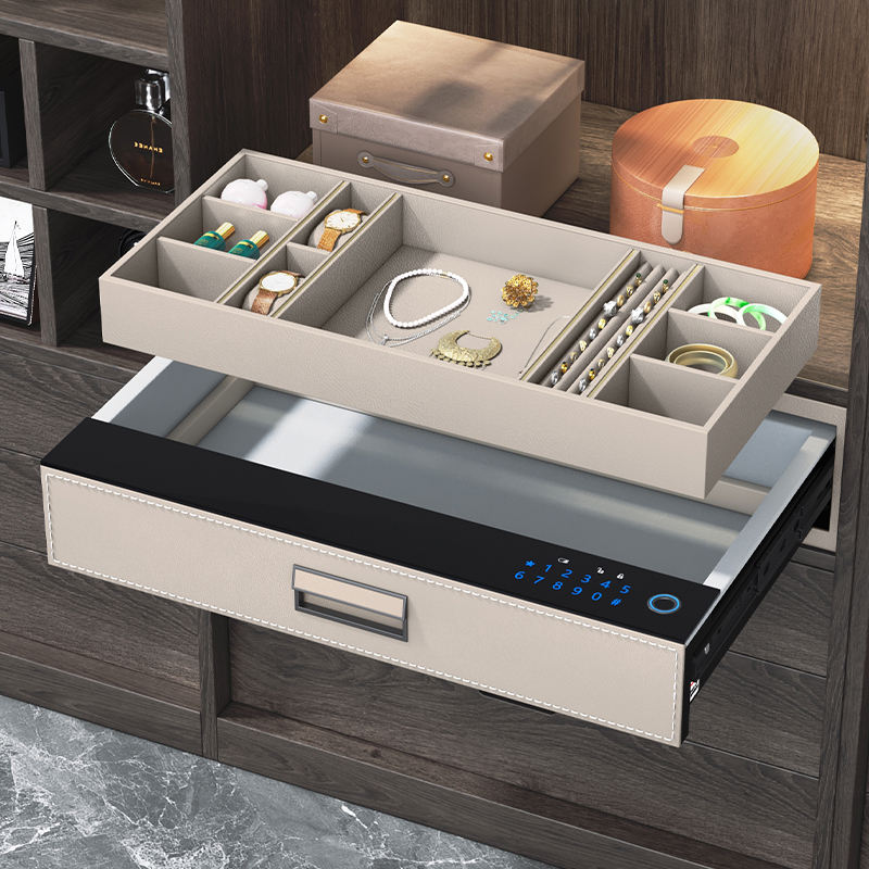 Scatola di sicurezza sicura per gioielli in pelle con blocco intelligente elettrico per cassetto per impronte digitali