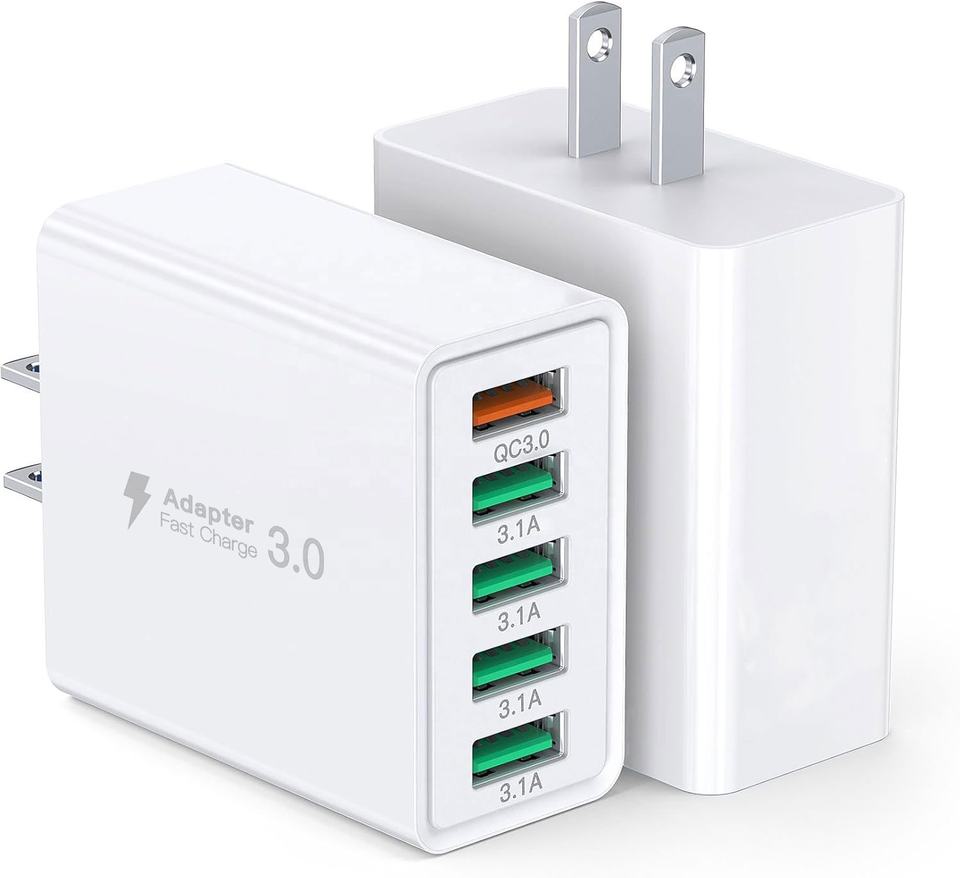 Caricatore da Muro USB HNT 50W con 5 Porte, Ricarica Rapida QC3.0, Adattatore Multiporta USB per iPhone, Galaxy, Telefoni Android