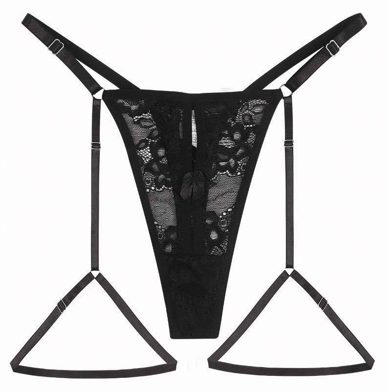 Mutandine a vita bassa con perizoma di colore della pelle Sexy e perizoma con perline in pizzo e filo G