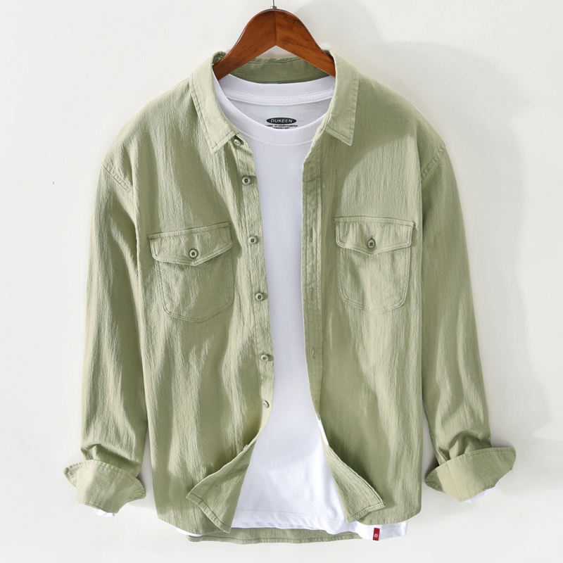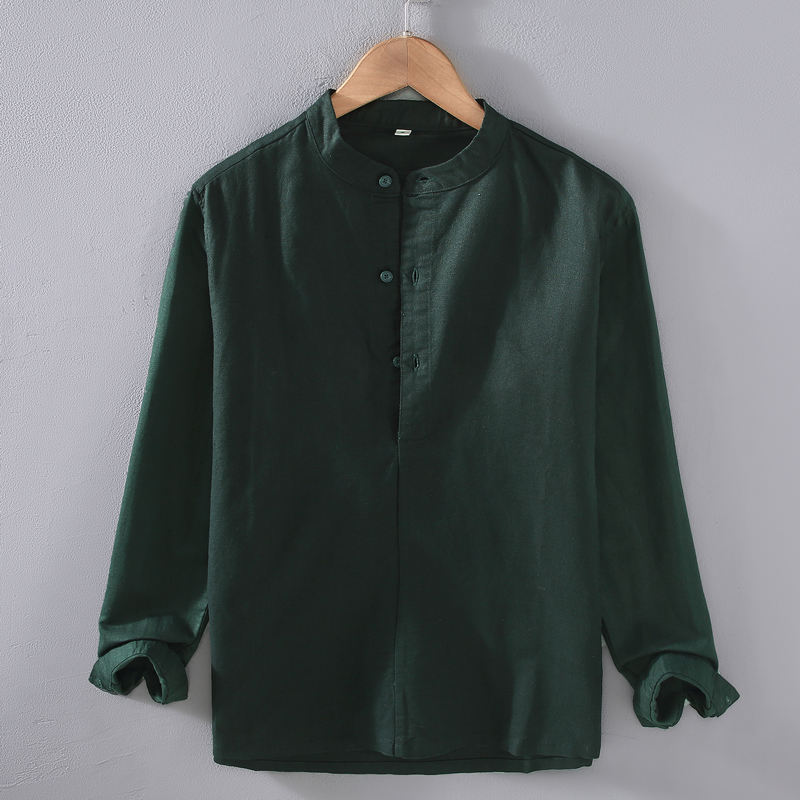 HO nuovo camicia uomo taglie forti a maniche lunghe di lino di cotone leggero e Casual camicia a maniche lunghe da uomo