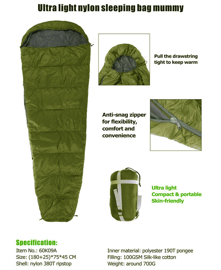 HOMFUL Ultra Light Camping Road Trip Custom Mummy Bag Nylon Lightweight Summer Sleeping Bag