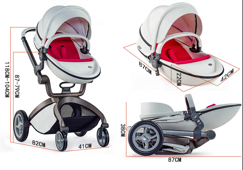 HOT MOM Stroller 3 in 1 Luxury Baby Triciclo Infantil Luxury Leather Baby Stroller 3 in 1