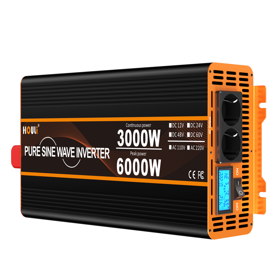 HOULI HPGL0050U Inverter solare off‑grid onda sinusoidale pura 12–60V DC a AC110/220V 800–10000W (THD<3%, 50/60Hz) eff. fino 95% protezioni 8‑bit per carichi resistivi/induttivi