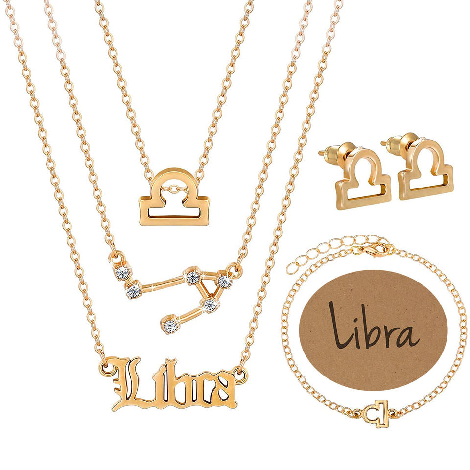 HOVANCI Hot Sale Starry 9 Old English Letter Twelve Zodic Vertical Necklace Bracelet Earrings Jewelry Set