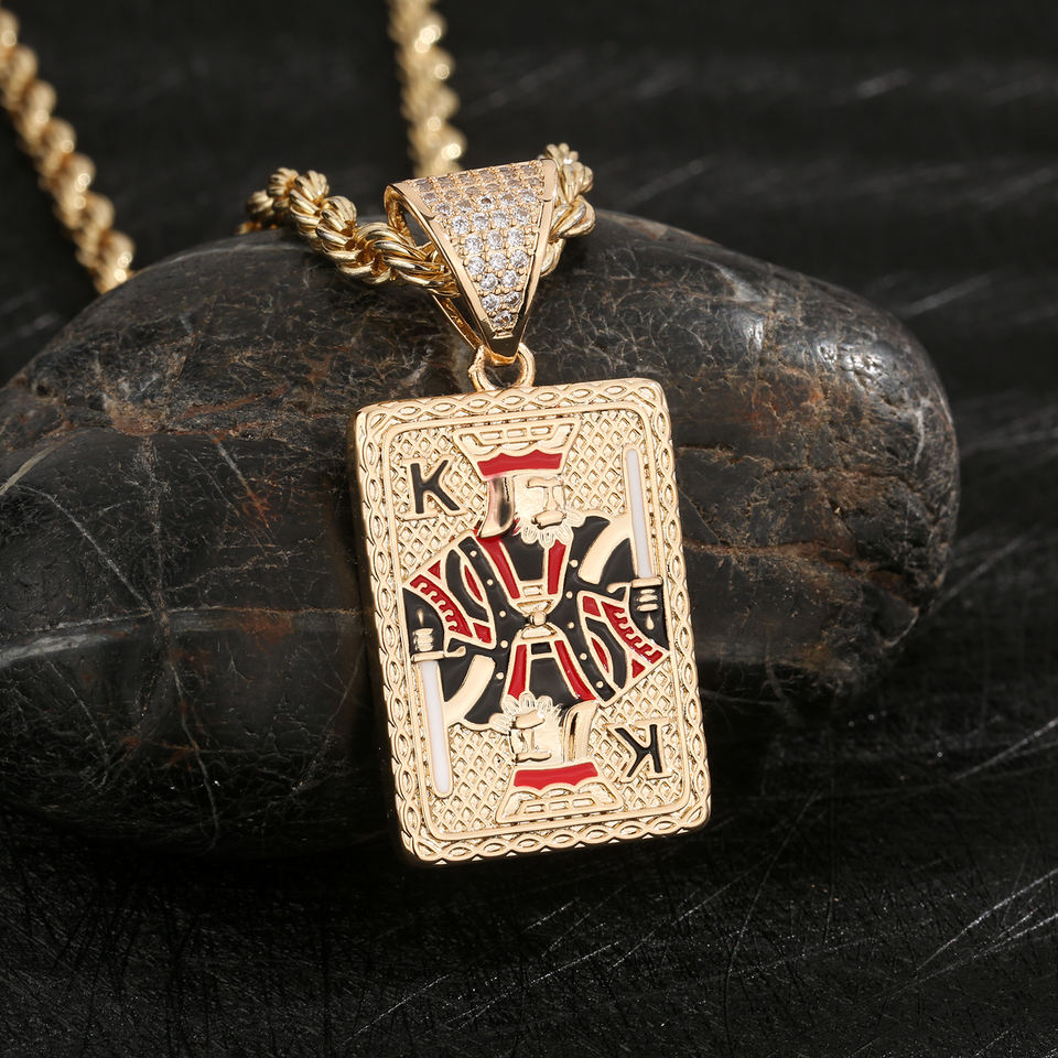 HP486 affascinante 14k oro re del Club ciondolo, semplice carta da gioco ciondolo, carta da gioco gioielli adatti per il regalo fidanzato