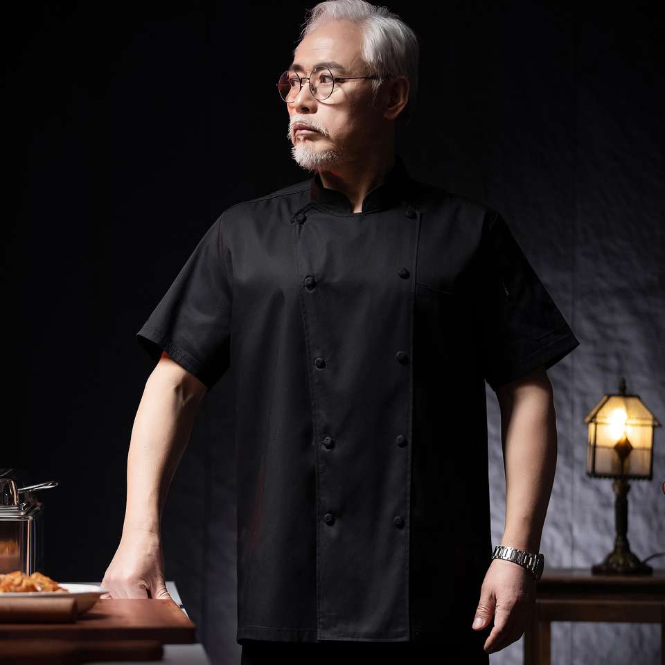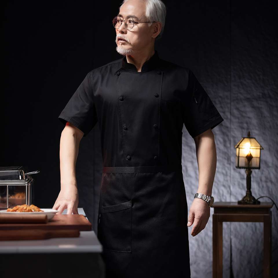 HQ Unisex manica corta giacca cappotto da cuoco nero o bianco tessuto in poliestere uso per le uniformi da cucina