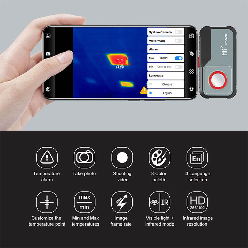 Termocamera Mobile Android USB-C HT-203U con Risoluzione Infrarossi 256x192 per Riparazioni Elettriche