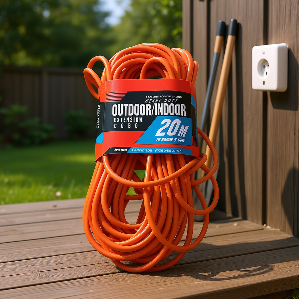 Cavo di prolunga per esterni e interni da 20 m con filo in rame, spina Nema 5-15P e terminale femmina a 3 fili con messa a terra per uso domestico