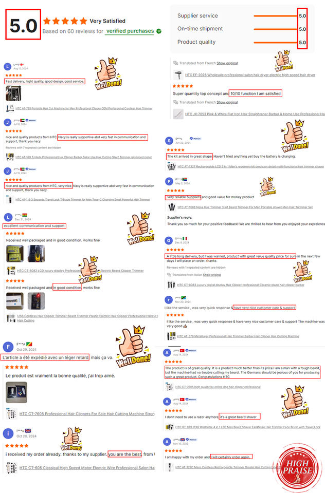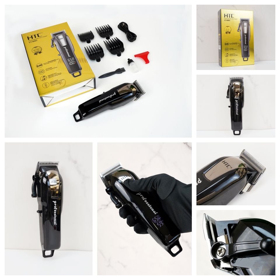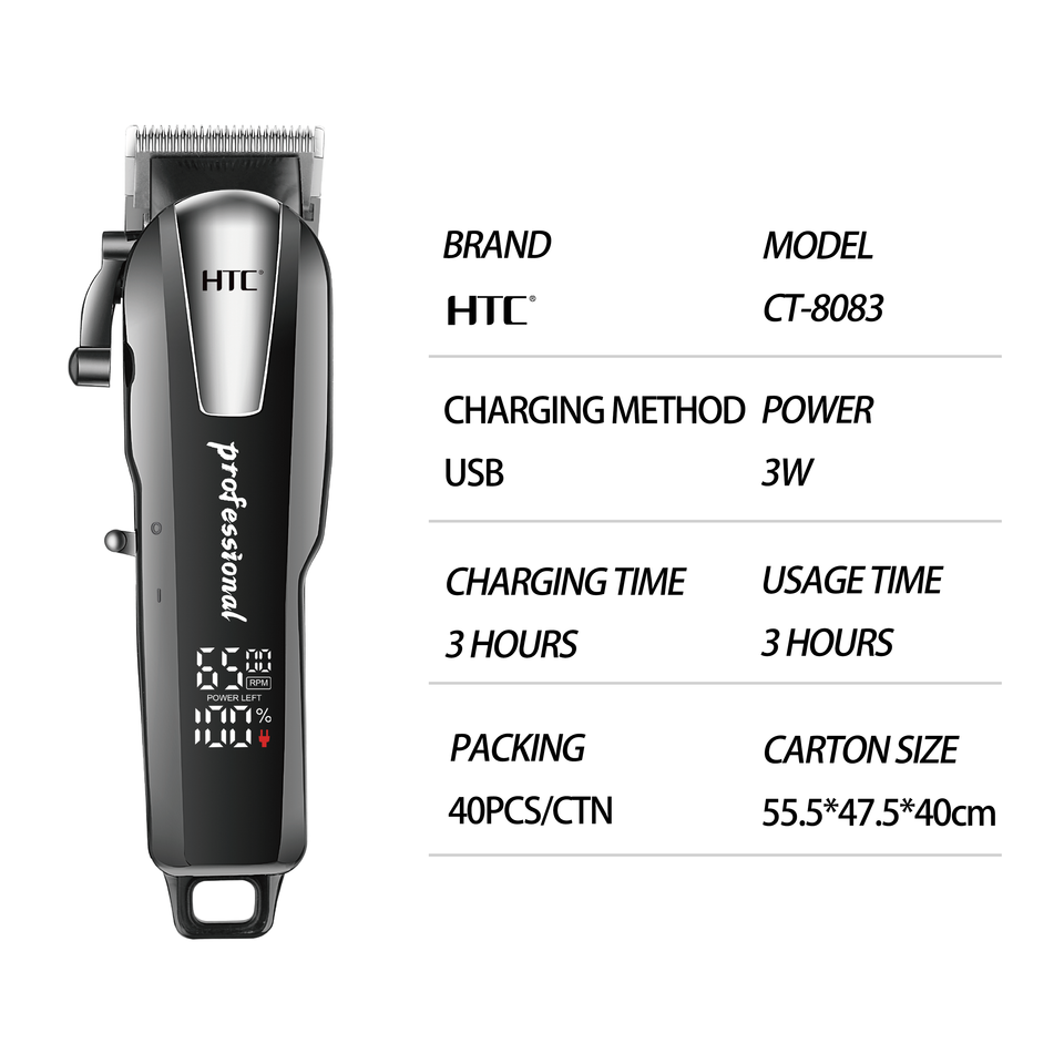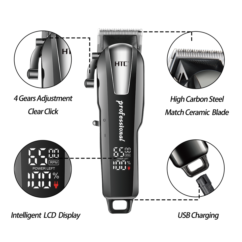 Tagliacapelli HTC CT-8083 con Lama in Ceramica di Lusso per Barbiere, Display Digitale e Voltaggio Costante Professionale