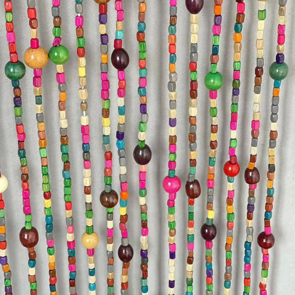 HUAYI Beaded Curtain Door Closet String Curtain with Wooden Beads for Bedroom Livingroom Bathroom